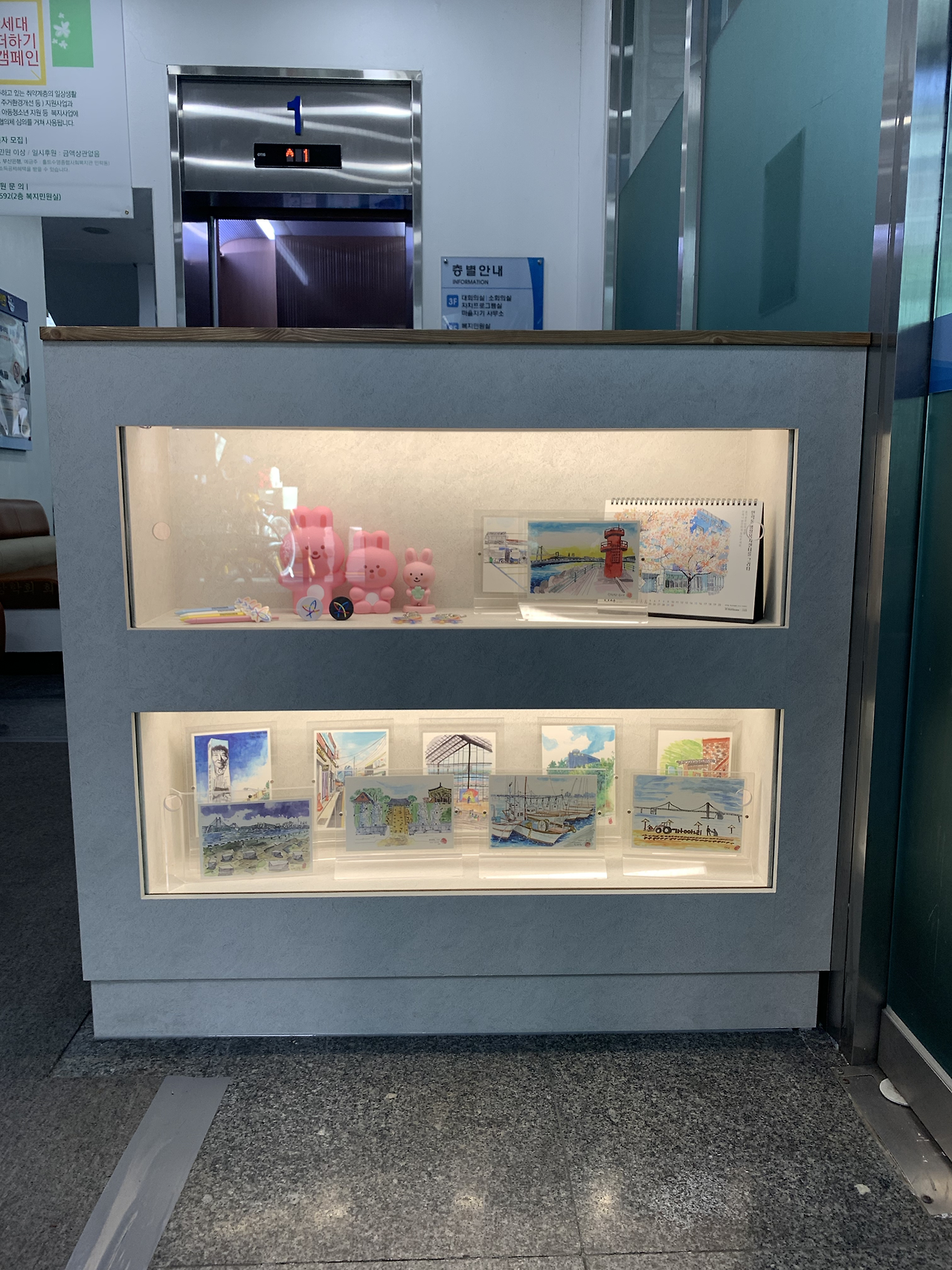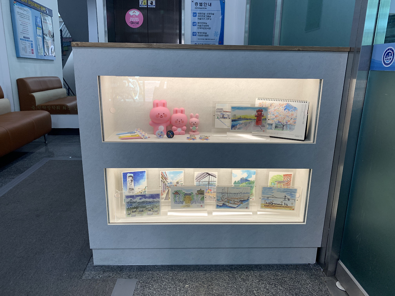 우리의 그림들은 민락행정복지센터 2층 계단 복도창가에 전시되어 있었다.