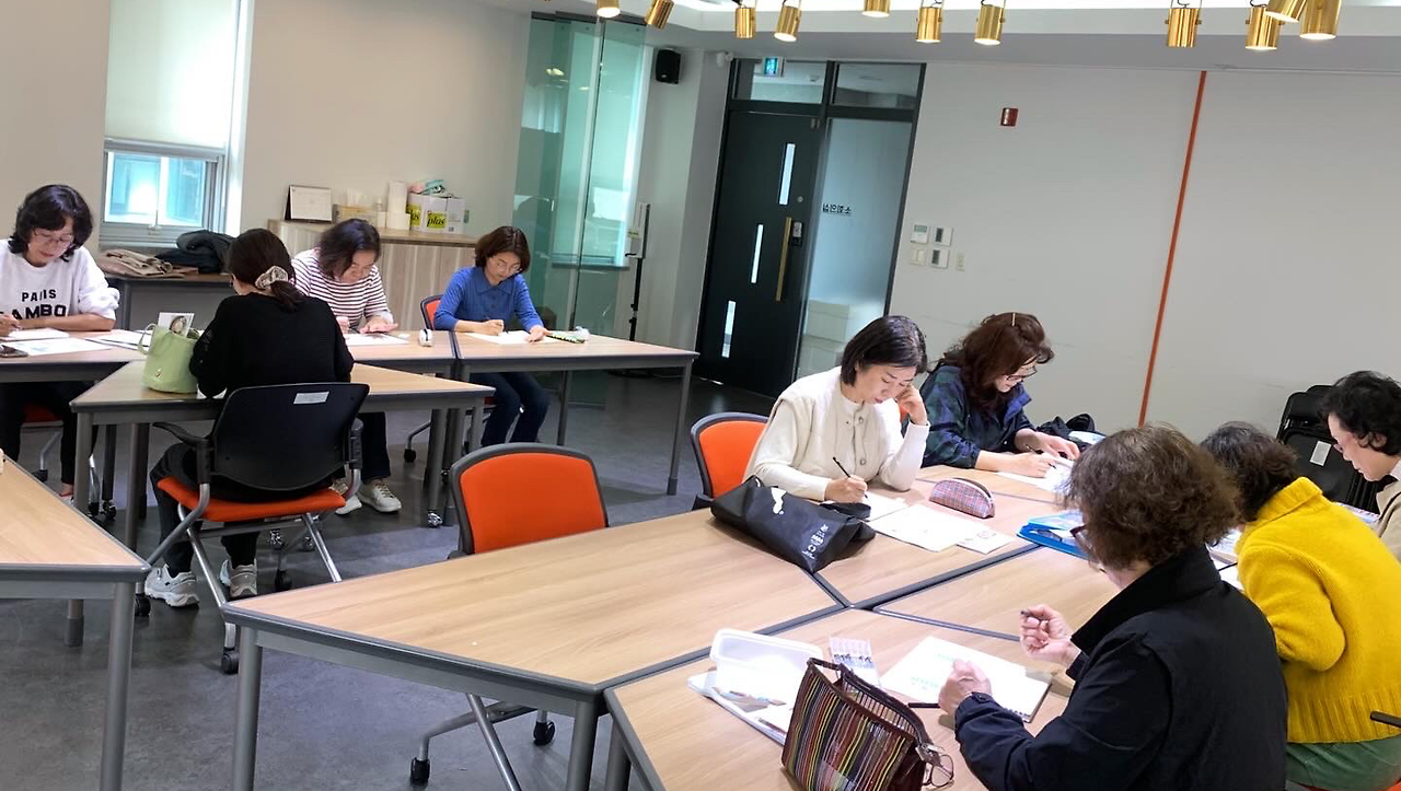 성인들은 자발적으로 배우러 오는 거라 오히려 더 열심히 하신다.