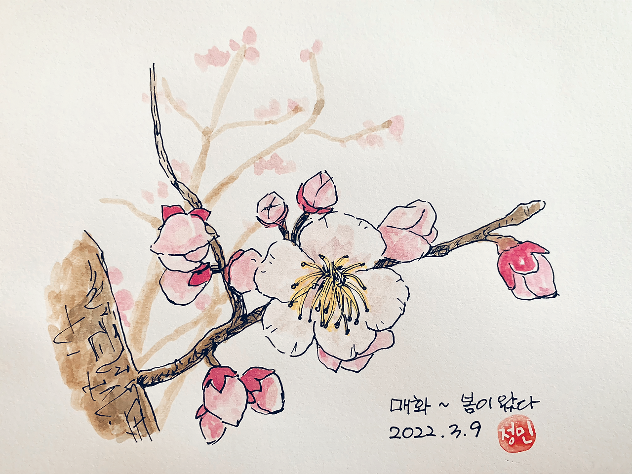 꽃망울을 터뜨린 꽃송이를 보며 봄이 주는 생기를 담아 본다.