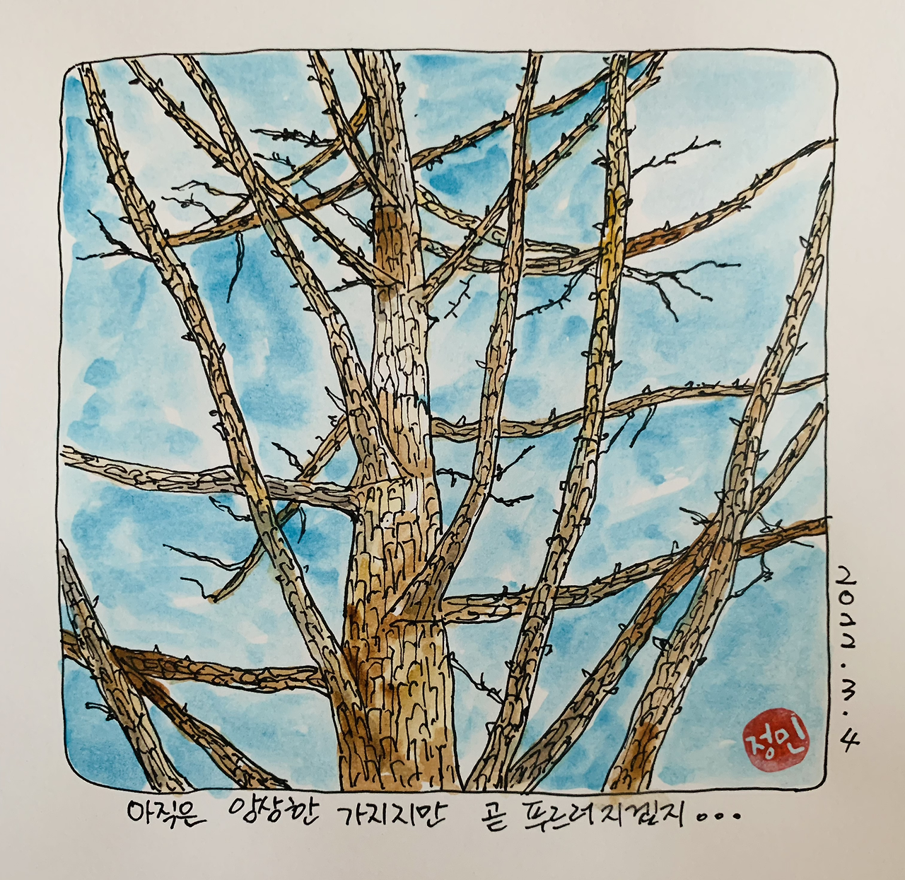 하지만 곧 다가올 봄을 준비하는 초록을 품고 있는 나무. 쓸쓸해 보이지 않는다.