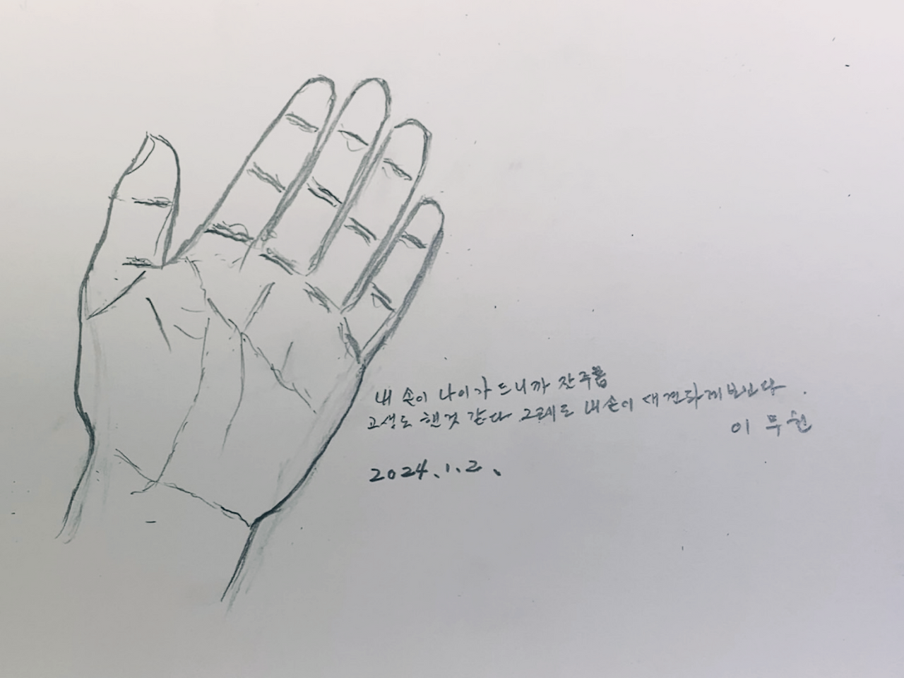 손을 바라보며 그리면서 나의 일생이 떠오르고 추억도 되새겨 진다.