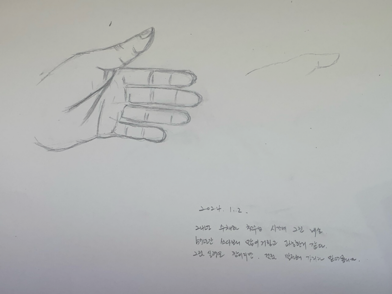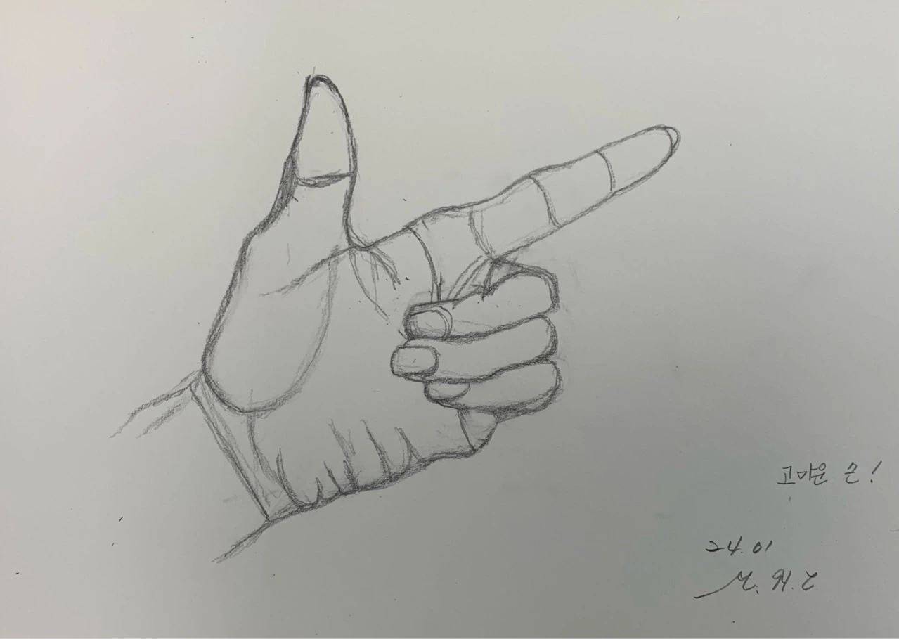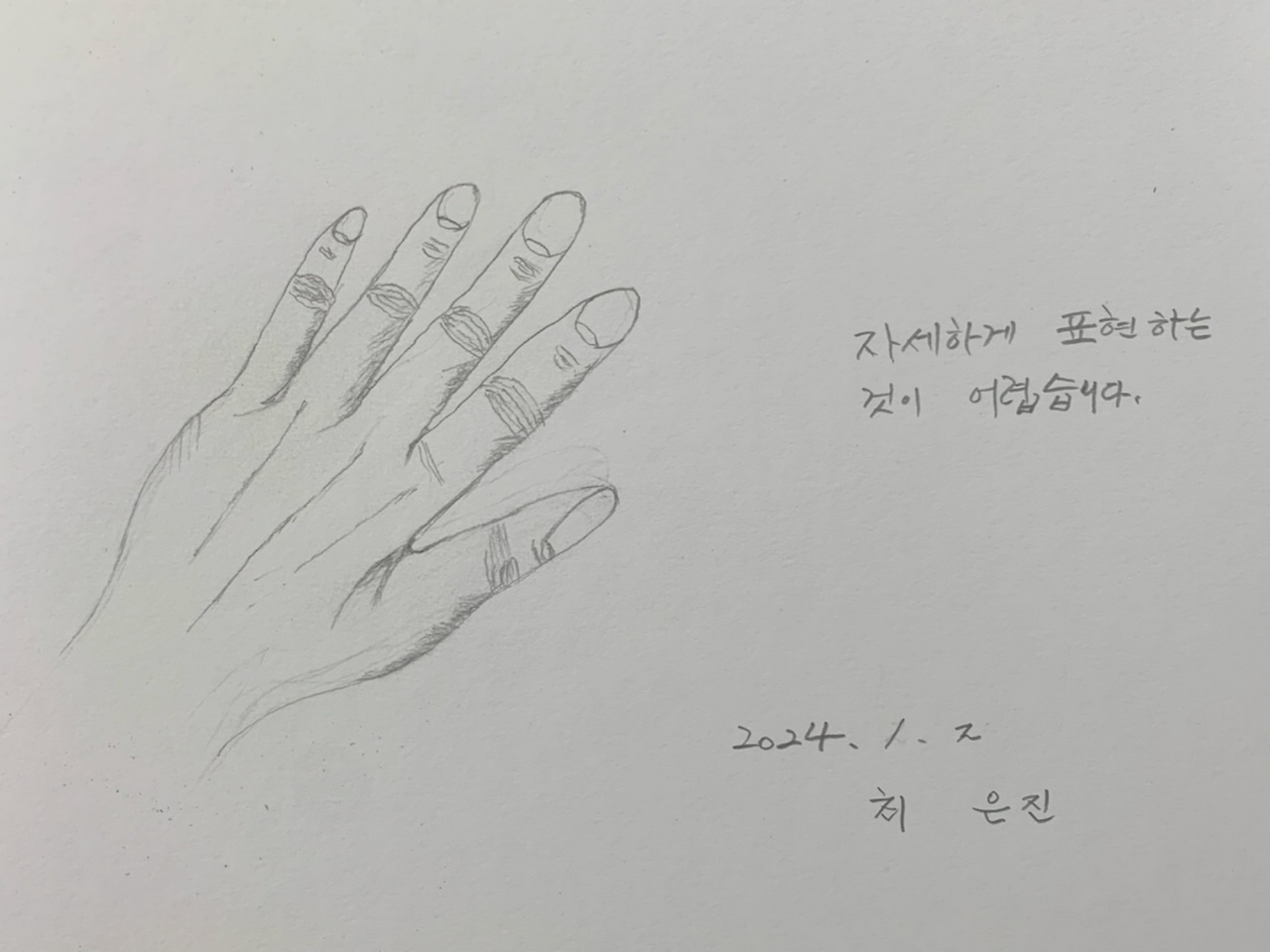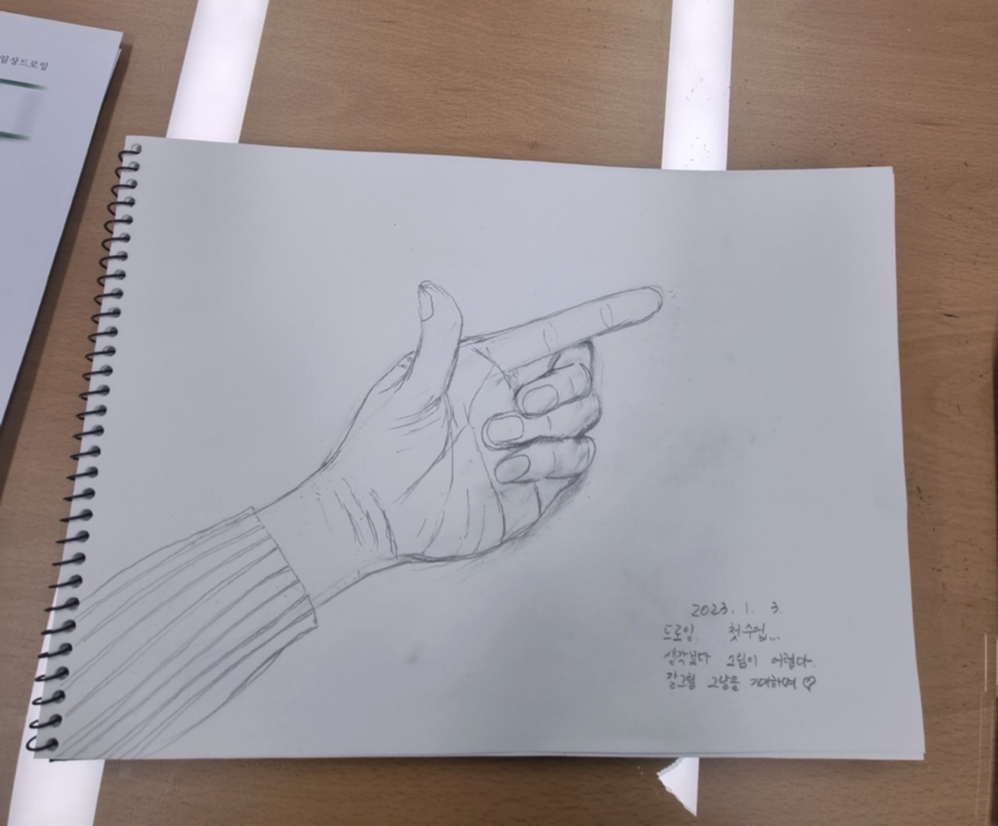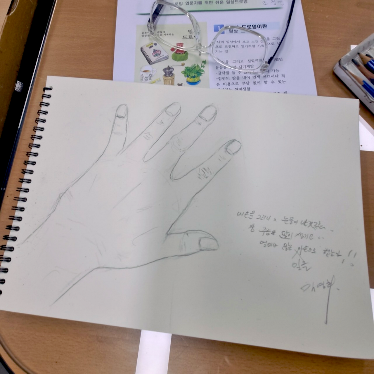 사실 손을 제대로 그리려면 힘들지만 첫 시간에 그려보게 하는 이유는 손을 관찰하여 그리면서 얼마나 자세히 보는지 관찰력의 정도와 어느 정도 그려내는지를 판단하기 위해서다.