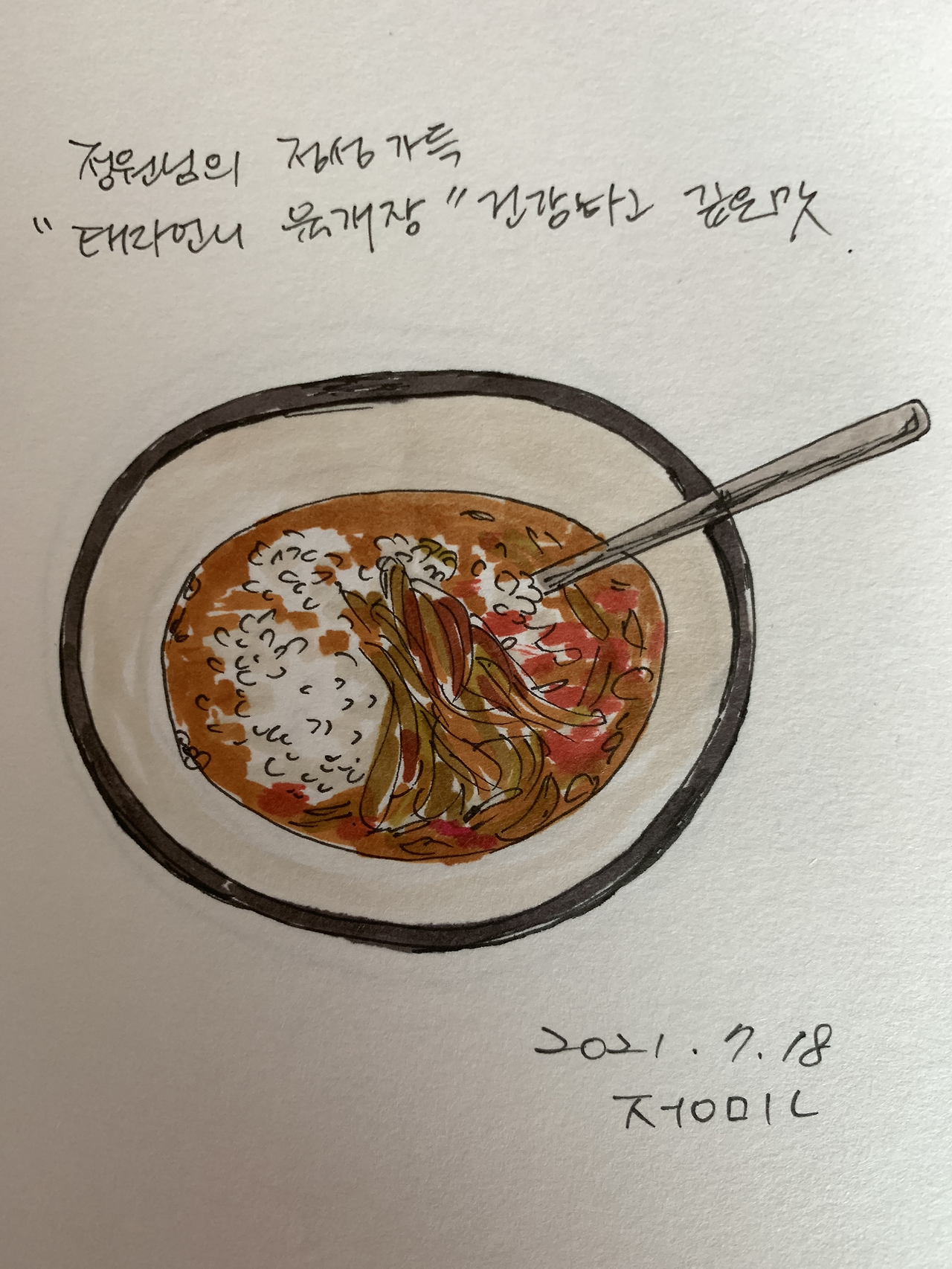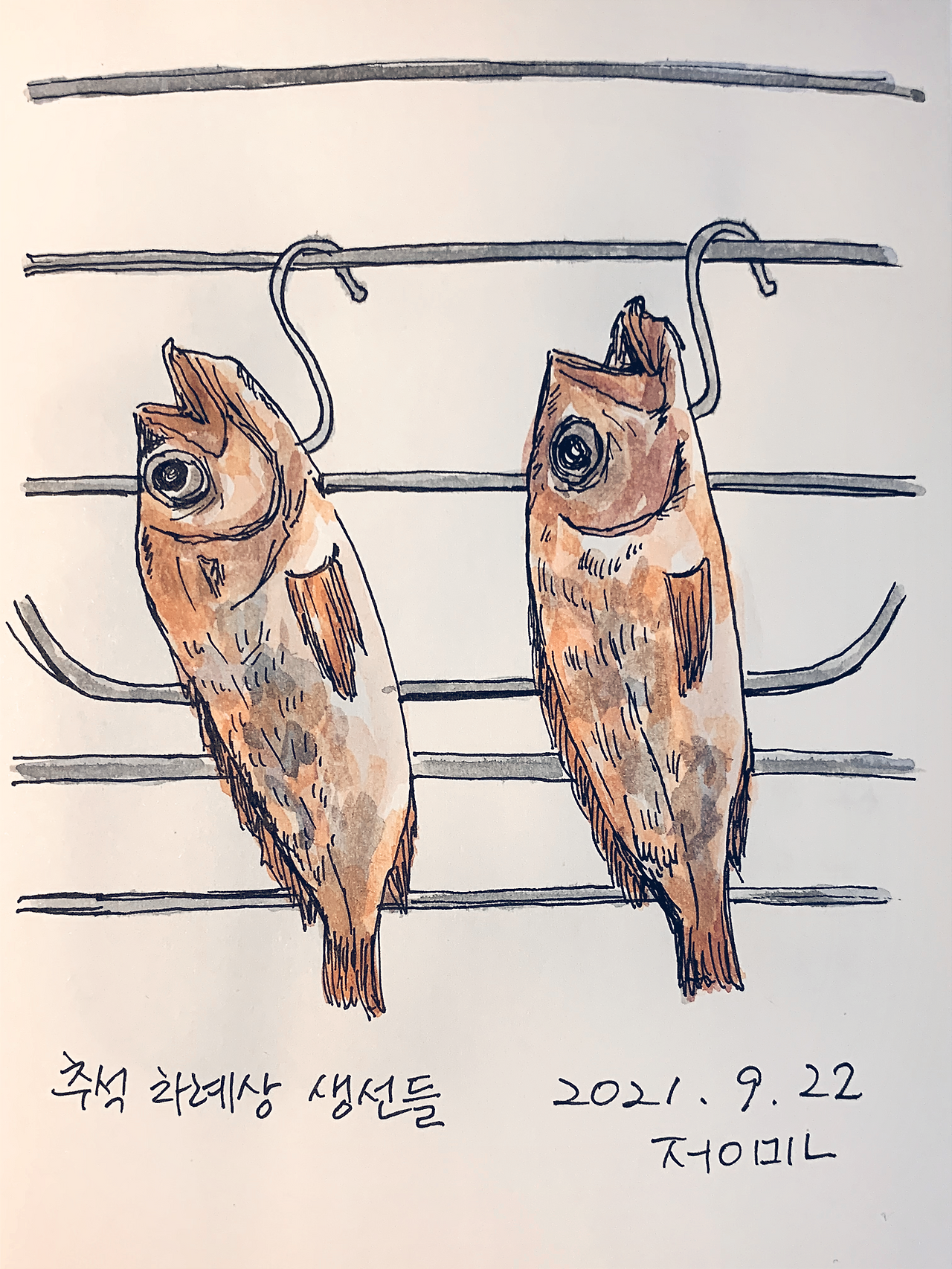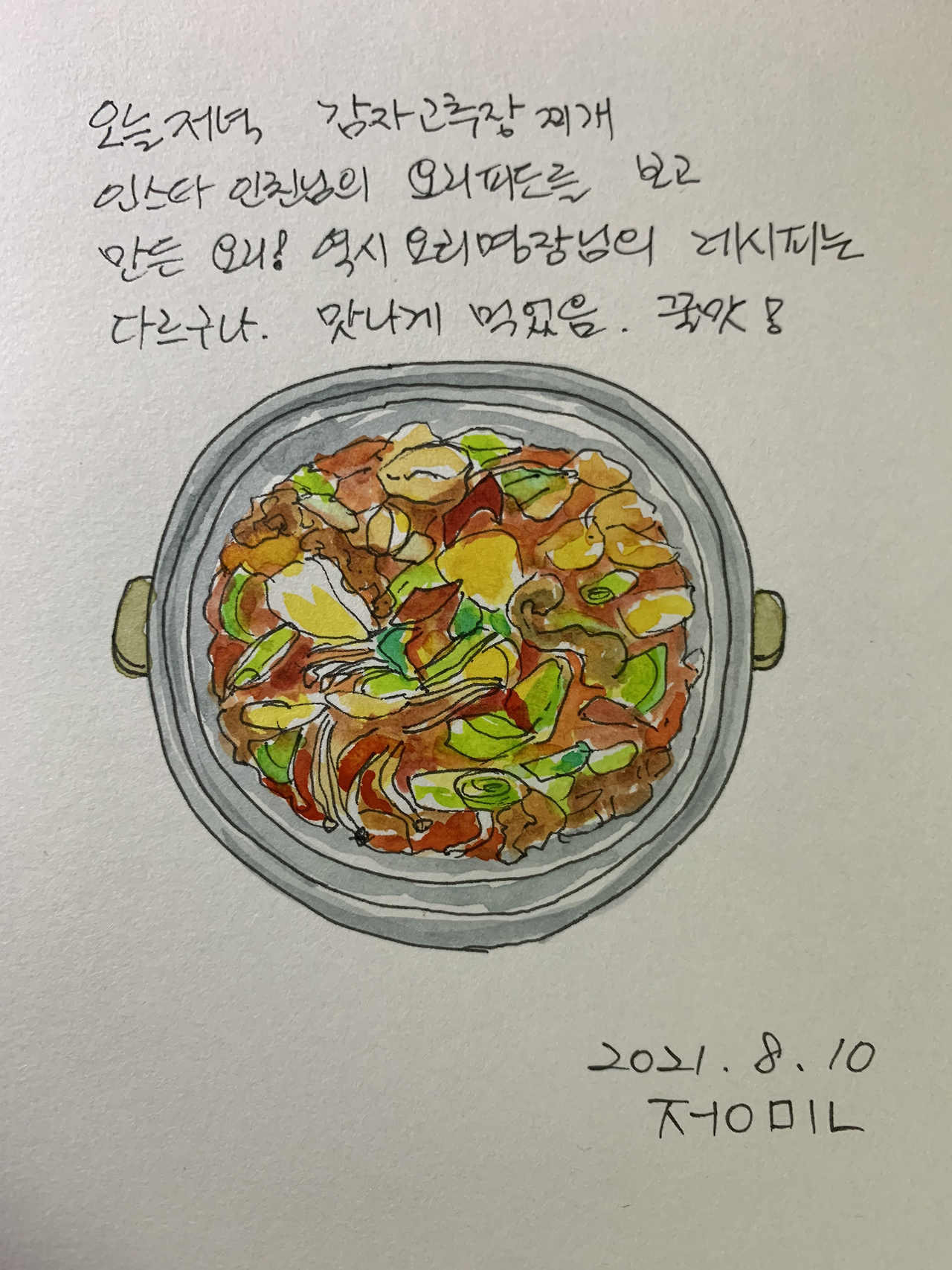 사람들이 얼마나 맛있었을까, 무슨 부침개일까, 궁금하다고 했다. 의외로 재밌는 그림이 되었다.