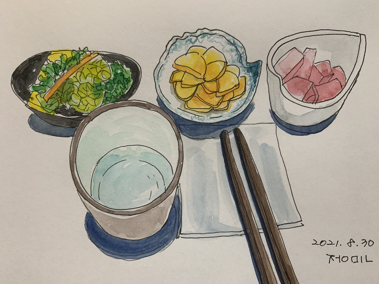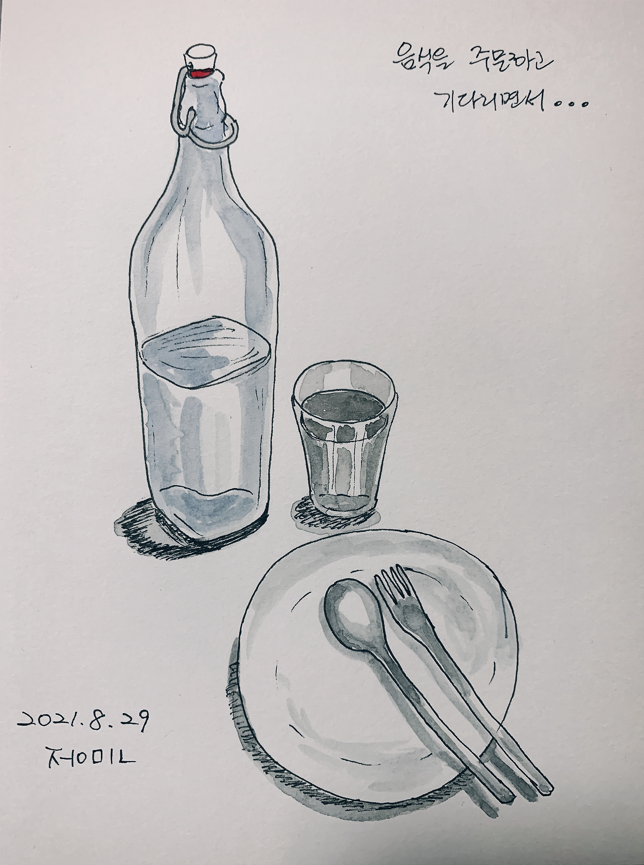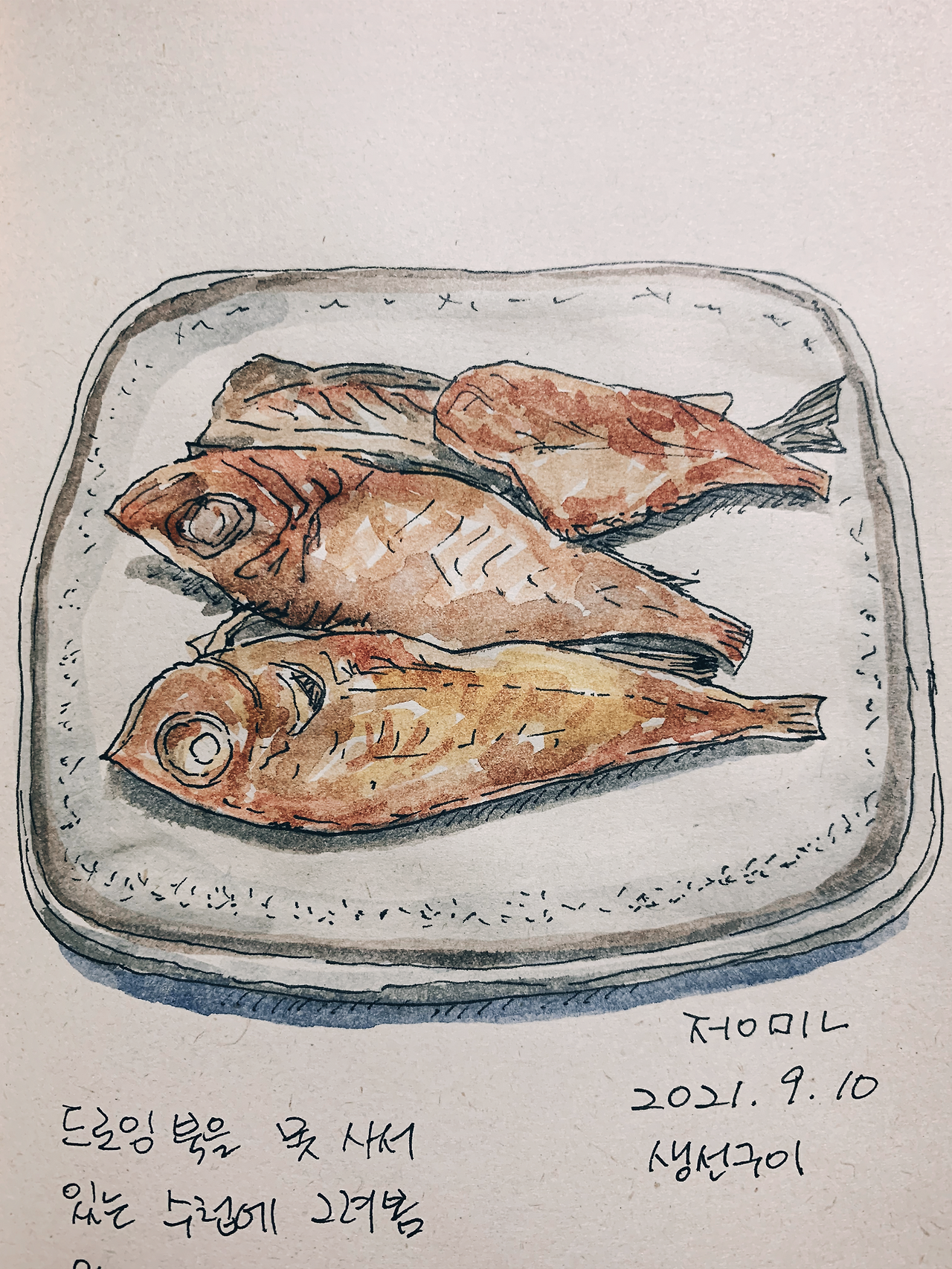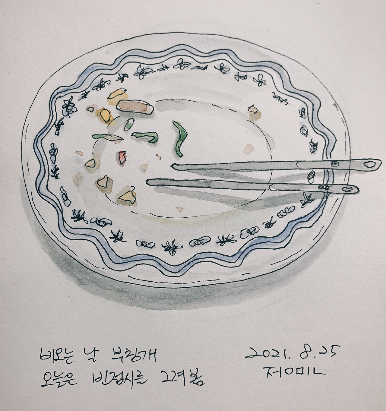 부침개를 그리려고 했는데 먹어 버려서 빈 접시를 그렸다. 그런데 이것도 꽤 좋다.