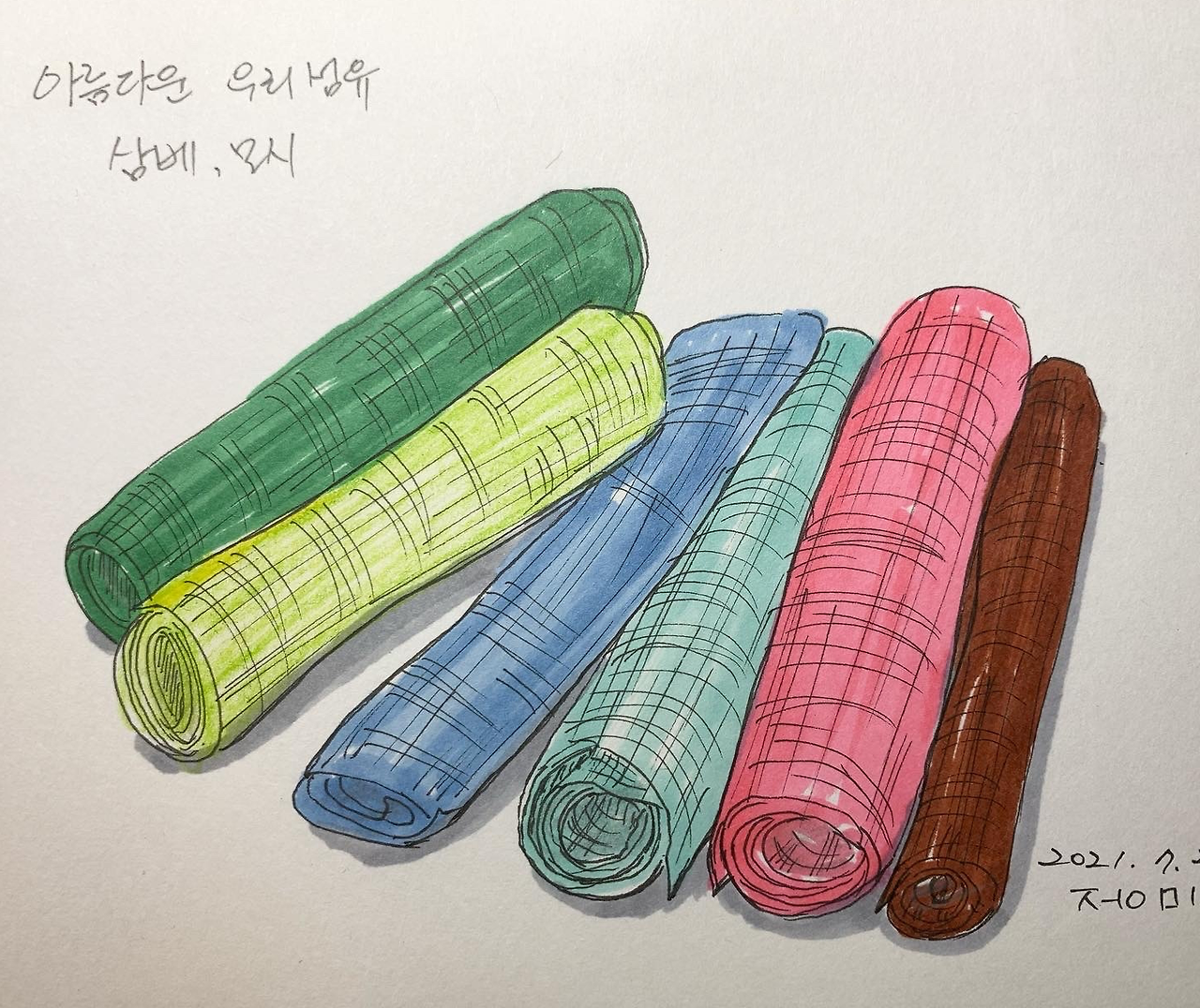 그렸을 때 상황과 그 시간의 추억도 함께 그림에 담기게 된다. 자세히 보게 되고 자세히 보다 보니 정겹다. 자잘한 물건들도 각각의 쓸모와 필요가 있다.