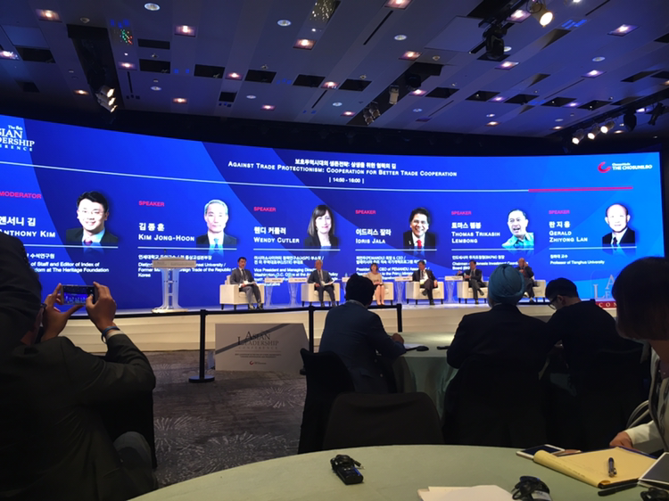 연사 : 김종훈 전 한국 통상교섭본부장, 웬티 커틀러 전 미국 무역대표부 부대표, 이드리스 잘라 전 말레이시아 총리 직속 국가개혁프로그램 직속 고문, 토마스 렘봉 인도네시아 투자조정청 청장, 란지용 중국 칭화대 교수