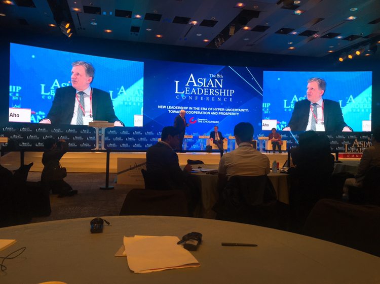 최근 활동하고 있는 '국인'이란 대학생 단체에서 좋은 기회를 얻어 조선일보가 주최하는 제8회 아시안 리더십 컨퍼린스에 다녀왔다. '초불확실성 시대의 뉴 리더십'이라는 큰 틀 안에서 진행된 이번 컨퍼런스는 '리더와 혁신', '동북아 평화협력', '포커스 온 차이나', '글로벌 경제 전망'과 같은 국제 정치 및 경제 관련 세션 뿐만이 아니라 '헬스 테크와 지속가능한 삶의 미래'와 '딥테크 스타트업 레볼루션'과 같은 4차 산업 혁명과 관련된 세션까지 다양한 이슈를 다루고 있어 관심 있는 이들에게 굉장히 유익한 경험이 될 듯 하다. 첫째 날인 오늘 나는 개인적인 일정이 있어서 일부만 참여했는데, 참여한 세션 모두 세계 각국 리더십의 교체와 반세계화 등으로 격변하는 시대를 맞아 새로운 리더십에 대해 논하는 'ALC 이니셔티브' 트랙에 포함된 것이었다. 그 중 특히나 흥미로웠던 세션은 '보호무역시대의 생존전략 : 상생을 위한 협력의 길'이었다.