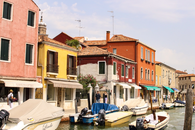 바포레토를 타고 시원한 바닷바람을 맞으니 사진 걱정은 잠시 떠나갔다. 항상 배를 타는 것에 대한 로망을 가져왔어서 그런지 배 위에서의 모든 것들이 마냥 좋았다. 첫 행선지인 무라노섬까지 가는 40분 동안 좌석에도 앉지 않고 조타실 옆에 서서 바다 바람을 맞으며 갔다. 머리결을 가르는 바람도 참 시원했고, 옆을 지나가는 작은 보트와 저 멀리 바다 위 성당을 구경하는 재미도 쏠쏠했다. 지난 일주일간 이탈리아의 더위로 받았던 스트레스를 하얀 물거품과 함께 흘려보낼 수 있었다. 시간 가는 줄 모르고 바다를 즐기니 무라노섬에도 금방 도착했다.