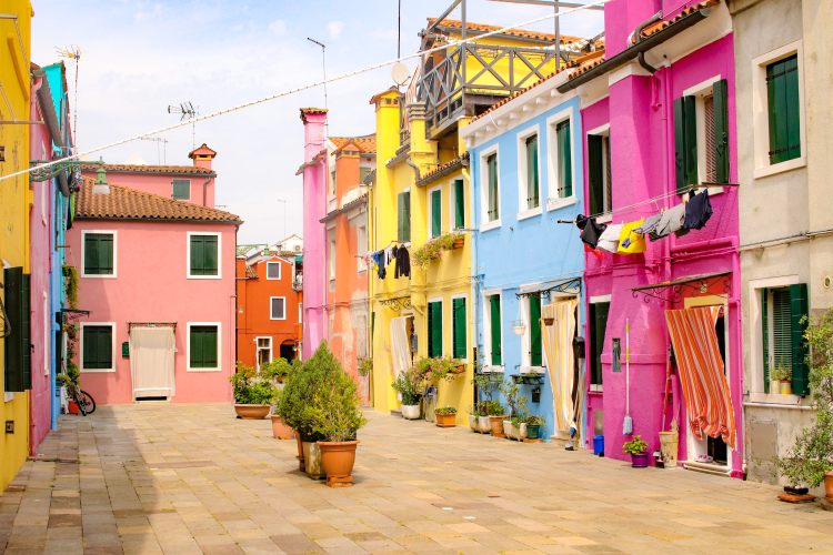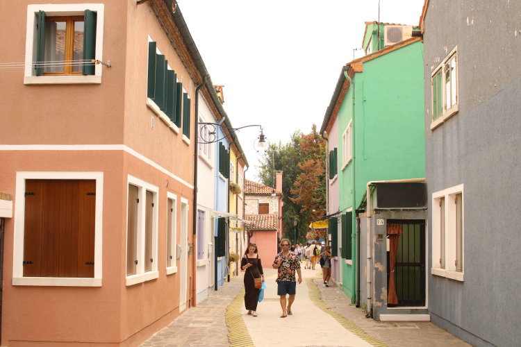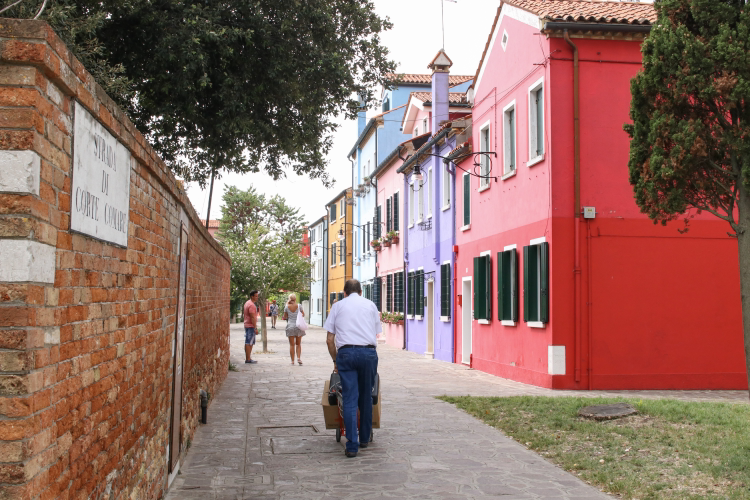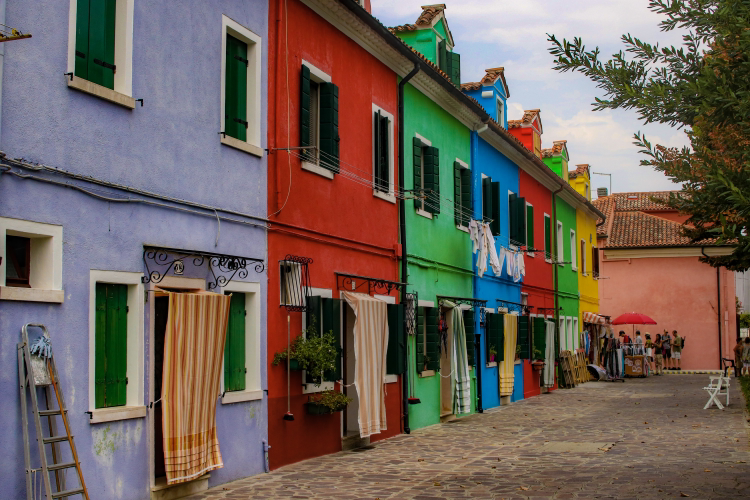 부라노섬을 걷다보면 정말 동화 속에 있는 느낌이었다. 모두 붉은 계통이었던 무라노와 달리 분홍, 초록, 파랑, 보라 등 갖가지 색이 다양하게 칠해져 있었다. 원래부터 이렇게 관리를 하는 것인지 관광객을 의식한 것인지는 모르겠지만 페인트가 벗겨진 곳도 별로 없어 깔끔했다.