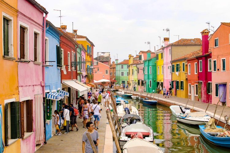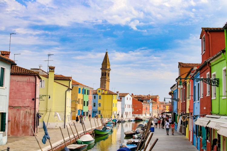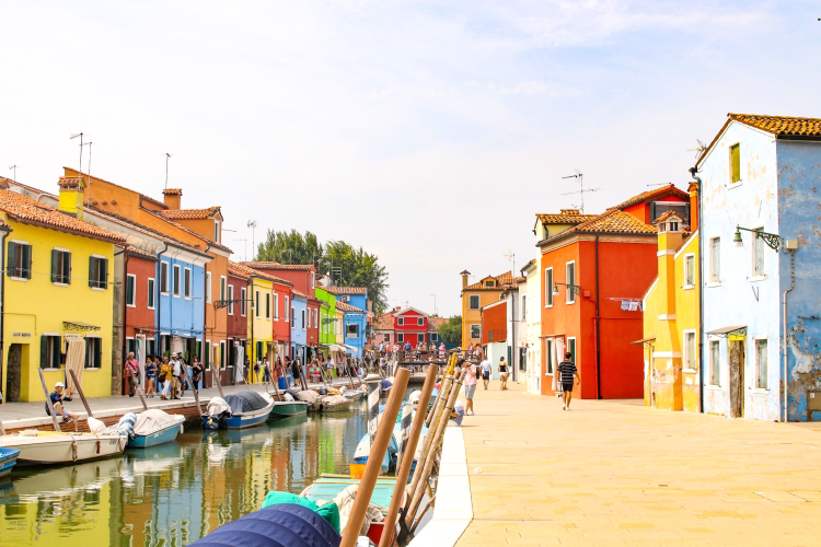 부라노섬으로 가는 바포레토에는 한국 사람들이 정말 많았다. 직전 여행지가 동양인을 겨우 두세명 본 베로나라 그런가 특히나 많게 느껴졌다. 베니스 관광지를 찾아보다 색감이 좋길래 부라노행을 정했었는데 알고보니 아이유 하루끝 뮤비촬영지로 유명해진 것이었더라. 역시 한국 사람들이 사진 잘나오는 곳은 잘 찾아다닌다. 그럴만도 한 것이 섬의 초입부터 집집마다 칠해진 강렬한 원색의 페인트가 배에 탔던 모든 이의 눈길을 사로잡았다. 섬에 진입하자 카메라 셔터소리가 정신없이 들리기 시작했다. 무라노보다 날씨도 맑아지고 있어서 너무도 예뻤다.