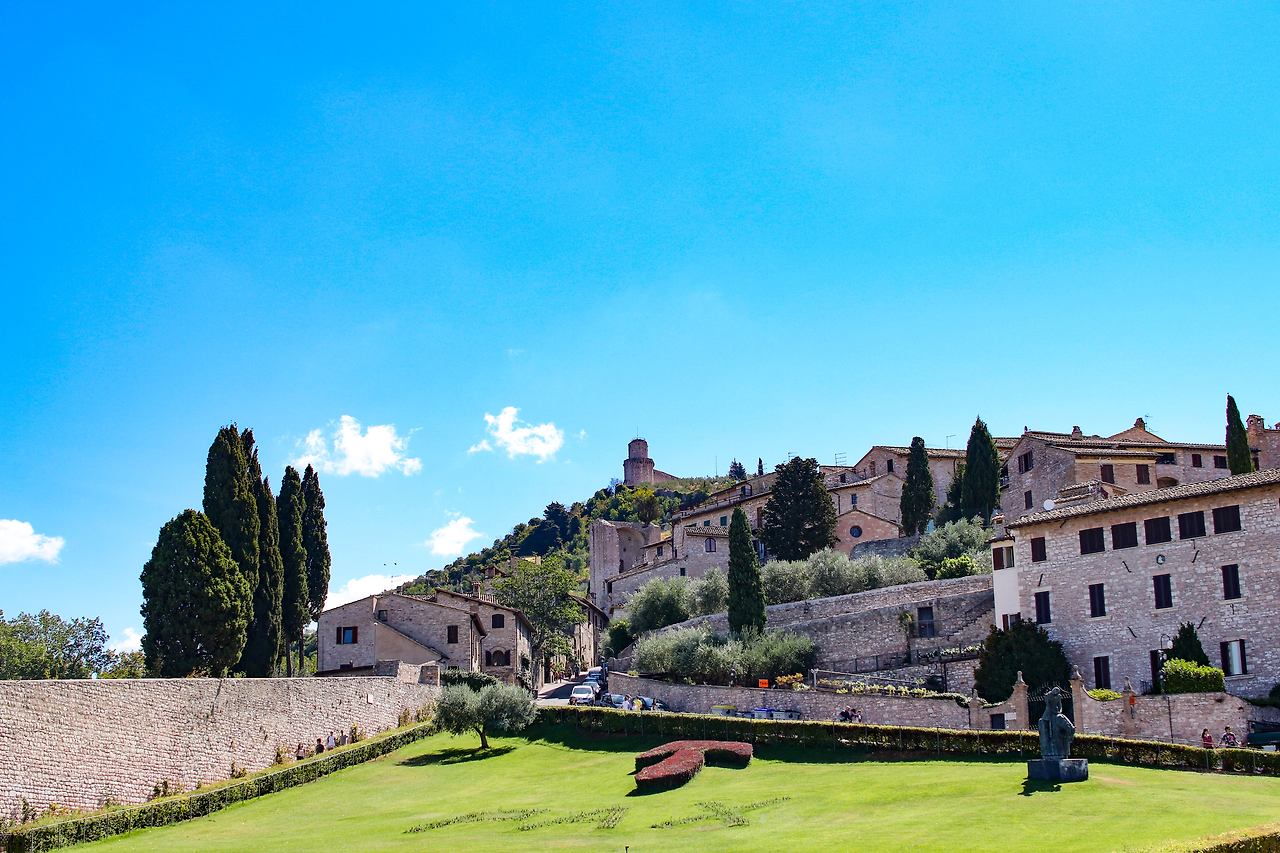 성당 내부는 성지순례를 하러 온 사람들로 가득 차 있었다. 애석하게도 사진 촬영이 금지라 내부의 모습은 담지 못했는데, 프란체스코의 일생을 담은 거대한 프레스코화가 성당 전체를 이루고 있었다. 곳곳에 오디오 가이드도 있었고 외부 테라스에서 전시회도 열리고 있었지만 외국인이 많이 안 오는 곳이라 그런지 영어 패치가 안되어 있어 뭔 소리지인지 하나도 이해 못했다. 점점 머리에 든 건 무식한 여행이 되어가는 느낌이 없지 않아 있었지만 대신 좋은 풍경들을 눈에 많이 담고 있어 나름 만족스러웠다. 동화 속에만 나올 것 같은 예쁜 언덕 위 성당이었다.