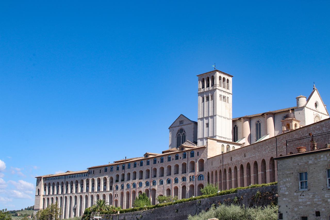 이튿날 오래간만에 숙소에서 아침을 해결하고 본격적인 도시 구경을 시작했다. 버스를 타고 올라올 때 보았던 길쭉한 성당으로 먼저 향했다. 지겹도록 보던 유럽식 건물이지만 베니스에서 바다와 함께 봤을 때 느낌이 달랐던 것처럼 산 위에서 새파란 하늘과 함께 보니 또 다른 느낌이었다. 성당의 전체 모습을 담으려 올라가는 길 중턱에 서 있는데 사람들이 연이어서 올라와 사진 찍기가 어려웠다. 버스를 타고 단체로 온 그들은 외국인 관광객이 아닌 이탈리아 사람들이었다. 알고 보니 이 곳 아시시는 성 프란체스코가 태어난 가톨릭 성지로 유명한 곳이었다.