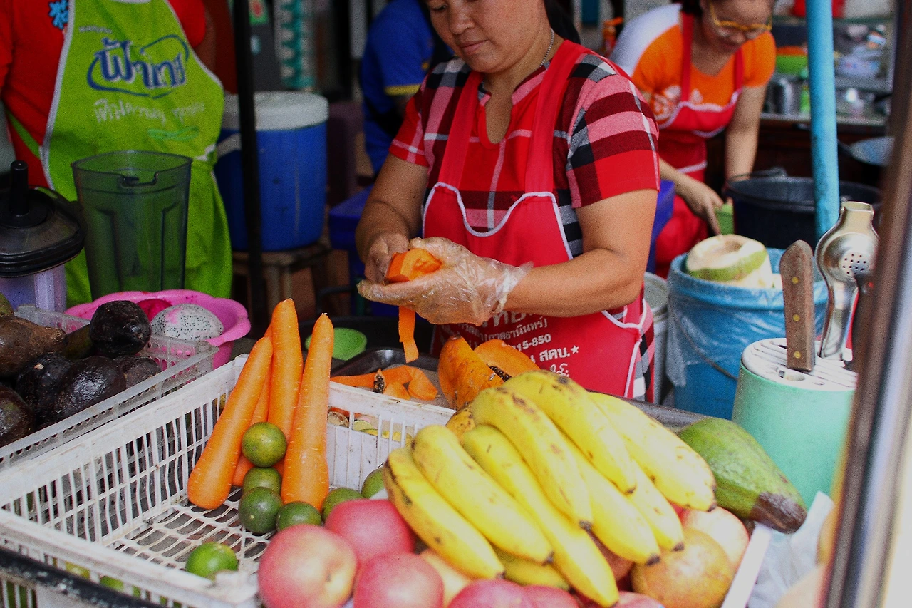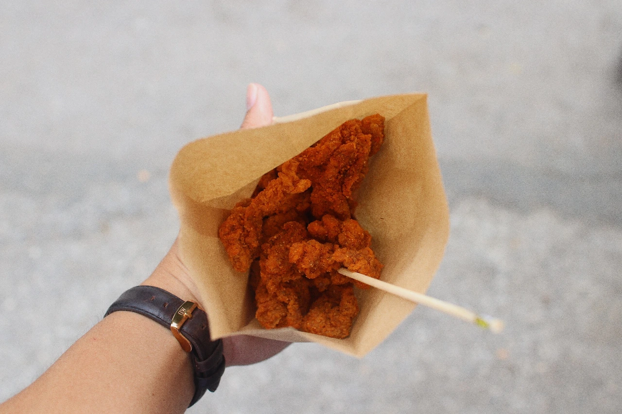첫 번째로 향한 곳은 삼왕상이 있는 광장이다. 올드타운의 중심에 있어 창푸악 게이트로부터 조금 걸어가야 했는데, 입맛을 다지게 하는 길거리 상점들이 간간히 보였다. 오는 길에 5바트짜리 닭꼬치도 하나 먹었음에도 태국식(?) 치킨팝콘을 하나 더 사먹었고, 생과일 쥬스도 한 잔 했다. 진열해 둔 생과일을 바로 칼로 손질하여 갈아주니 왠지 더 맛있게 느껴졌다. 마침 근처 학교의 하교시간이었는지 학생들도 많이 사먹는 모습이 보여 안심하고 먹었다. 옆 가게의 달콤한 핫케이크 냄새를 뒤로하고 발을 옮겼는데, 그새를 못참고 카페에 들어가 밀크티 한 잔 했다. 피로도 좀 풀고 배도 차니 다운됐던 기분이 조금씩 나아지기 시작했다.