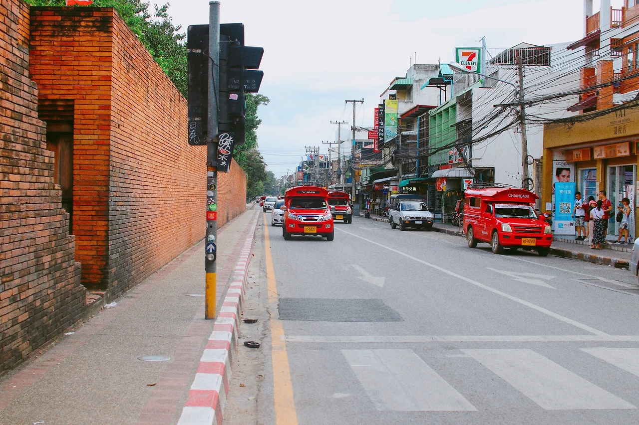 도착한 곳은 치앙마이의 중심부에 있는 올드타운이라 불리는 곳이었다. 현대적인 분위기의 님만해민과 달리, 직사각형의 해자와 성곽으로 둘러쌓인 이 곳은 고대 유적지 분위기가 나는 구도심이라고 한다. ‘쁘라뚜’라 불리는 5개의 성문 중 내가 들어간 곳은 ‘수안 독 게이트’라는 성문인데, 그 입구까지도 자동차와 바이크의 엄청난 행렬이 이어졌다. ‘올드타운’이라는 명칭이 주는 아우라가 있어 성문 안쪽으로 한 발짝 내딛기만 해도 고대 유적지가 많을 줄 알았는데 막상 그렇지도 않더라. 물길 따라 걷는 것을 좋아해 기대했던 해자도 고인물이라 그런지 많이 탁했다. 매연만 가득했던 게이트 앞에서, 또 한 번 실망한 순간이다.
