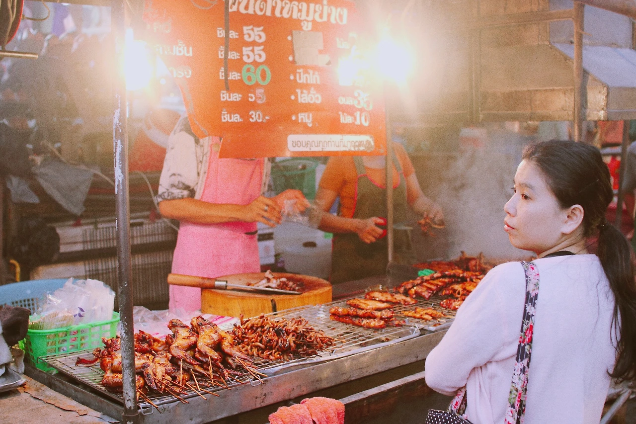 와로롯 마켓은 규모가 그렇게 크지는 않았지만 있을 것은 다 있었다. 일단 이틀 동안 여행하면서 본 각가지 길거리 음식들이 총집합되어 있었고, 이외에도 옷, 신발, 과일, 악세사리, 기념품 등을 파는 상인들로 가득했다. 한국에도 야시장 열풍이 열어 서울 밤도깨비 야시장 뿐만 아니라 어느 지역을 가도 야시장이 열리고는 하는데, 모습이 상당히 다르다. 한국의 야시장은 말만 '시장'이지 지역 상인의 가게가 아니라 값비싼 푸드트럭들로 가득한, 자본주의적으로 조성된 인위적인 공간이다. 치앙마이의 야시장은 사람들도 많이 찾으면서도 시장이라는 공간이 갖고 있는 특유의 속성이 잘 남아있는 느낌이었다. 관광객들로 가득한 것은 매한가지지만 그 속에서 나는 향이 많이 달랐달까. 말로 형용하기는 어렵지만, 그 느낌이 참 좋았다.