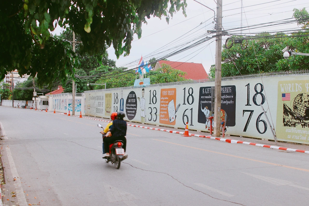 글 쓰는 도중, 틈틈히 뭐할지 찾아보며 정한 여행 컨셉은 자전거 투어. 태국에서는 Mobike라는 자전거 대여 서비스가 활성화 되어있었다. 서울의 따릉이와 비슷하게 사용할 시간에 따라 요금을 충전하는 방식이었는데, 따릉이와 달리 아무데나 주차해도 된다. Mobike 어플을 실행하면 지도가 나오면서 근처에 있는 자전거 위치가 나오고, QR코드 찍으면 자전거의 잠금장치가 풀린다. 실컷 탄 다음 정해진 주차 구역이 아니라도 아무데나 잘 잠궈두기만 하면 되는 방식이었다. 마침 숙소 바로 앞에 한 대가 있었다. 90분을 결제하고 QR코드를 찍었는데, ‘잠금장치가 망가졌네요. 무료로 사용하세요!’라는 알림이 떴다. 아싸리 기분좋게 꽁짜 자전거 타고 출발했다. 오후 4시 쯤이었다.