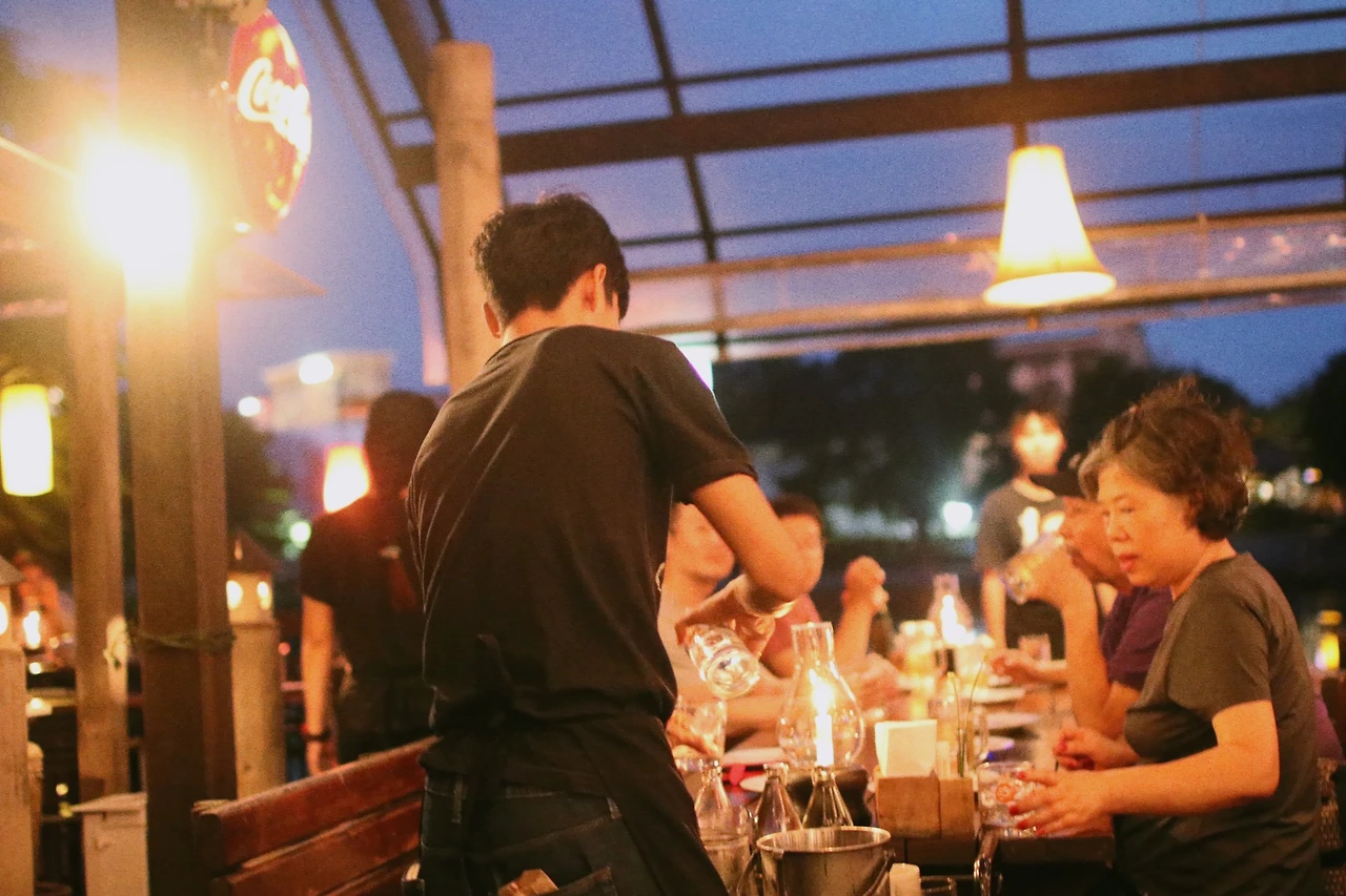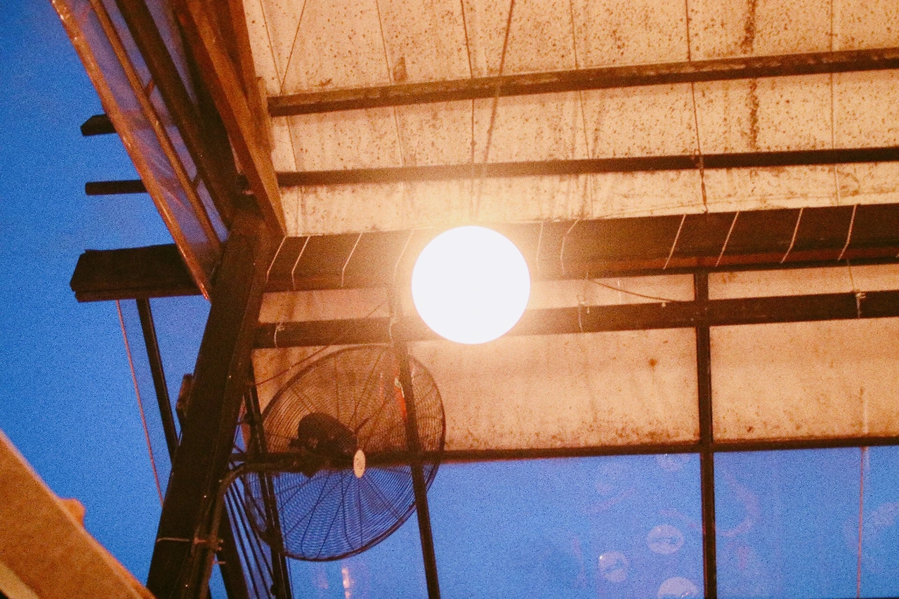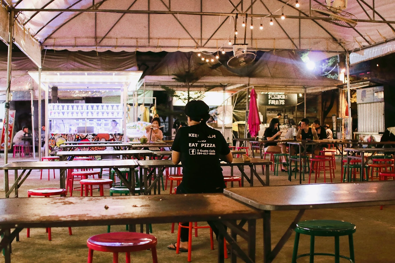 시장 구경을 하다보니 시간이 금방 갔다. 구름이 껴서 오늘도 노을은 보지 못했지만, 해가 지자마자 구름이 걷혀 푸르른 저녁 하늘이 보이기 시작했다. 조명도 한 둘 켜지니 시장의 분위기도 깊어갔고 코끝에 아른거리는 음식 냄새도 더욱 풍성해졌다. 바로 다음 목적지인 나이트 바자로 향하려다가, 무언가 아쉬웠다. 특히 핑 강. 한 껏 기대하고 온 몇 없는 오늘의 행선지였는데 이대로 떠나보내기 아쉬웠다. 구글맵스를 켜서 찾아보니 핑 강의 야경이 내려다보이는 레스토랑 하나가 금방 나오더라. 자전거를 타고서도 잠깐 고민했지만, 핸들을 돌려 강 건너로 향했다.