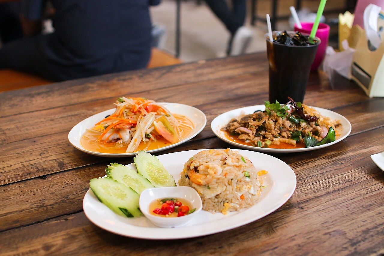 ‘Solao’라는 현지 식당에 가서 해산물 쏨땀, 오리 고기 볶음 요리, 새우볶음밥, 밀크티 총 4개를 주문했다. 한 접시로만 놓고 보면 약 4-50바트로, 한화로 2천원도 안되는 가격이라 굉장히 저렴하다고 볼 수 있다. 싸다는 이유로 이렇게 한 접시, 두 접시, 음료까지 시키다보니 한국에서 한 끼 먹는 값이 훌쩍 넘더라. 가격보고 돈 막 쓰다가 금방 파산할 것 같다는 생각이 들었다.(여행 4일차에 정말 파산해서 추가 환전 했다고 한다.)