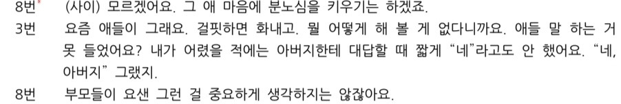 문제는 그 에너제틱한 성향이 대사를 외우는 스타일에도 적용되어서, 정확한 암기보단 넘치는 기세로 대사의 뉘앙스만 습득한 상태라는 거였다. 3번의 대사에서 "뭘 어떻게 해 볼 게 없다니까요."를 "뭘 더 어떻게 해야 됩니까?"라고 말하는 식이었다. 분명 목소리나 몸짓으로는 대본에 나온 대사의 맥락을 잘 표현하고 있었지만, 어찌 됐든 정확히 대사를 외워야 실전에서 정확히 내뱉을 수 있을 거라고 교수님이 말씀하셨으니 그렇게 해 주셨으면 좋겠다고 전했다. 사실 이런 틀린 지점을 하나하나 지적하는 것이 껄끄러울 때가 있었다. 아무리 대사를 외운 걸 검사한다 하더라도 '굳이 이것까지 지적해야 하나?' 같은 부분도 있었는데, 예를 들어 '어린애'를 '어린놈'으로 말한다거나 '왜 그런 겁니까?'를 '왜 그런 거예요?'로 말한다던가 하는 경우였다. 그래도 지적을 하지 않으면 안 됐다. 잘못 말해서 그다음 사람이 대사를 못 내뱉는 것보단 나으니까.