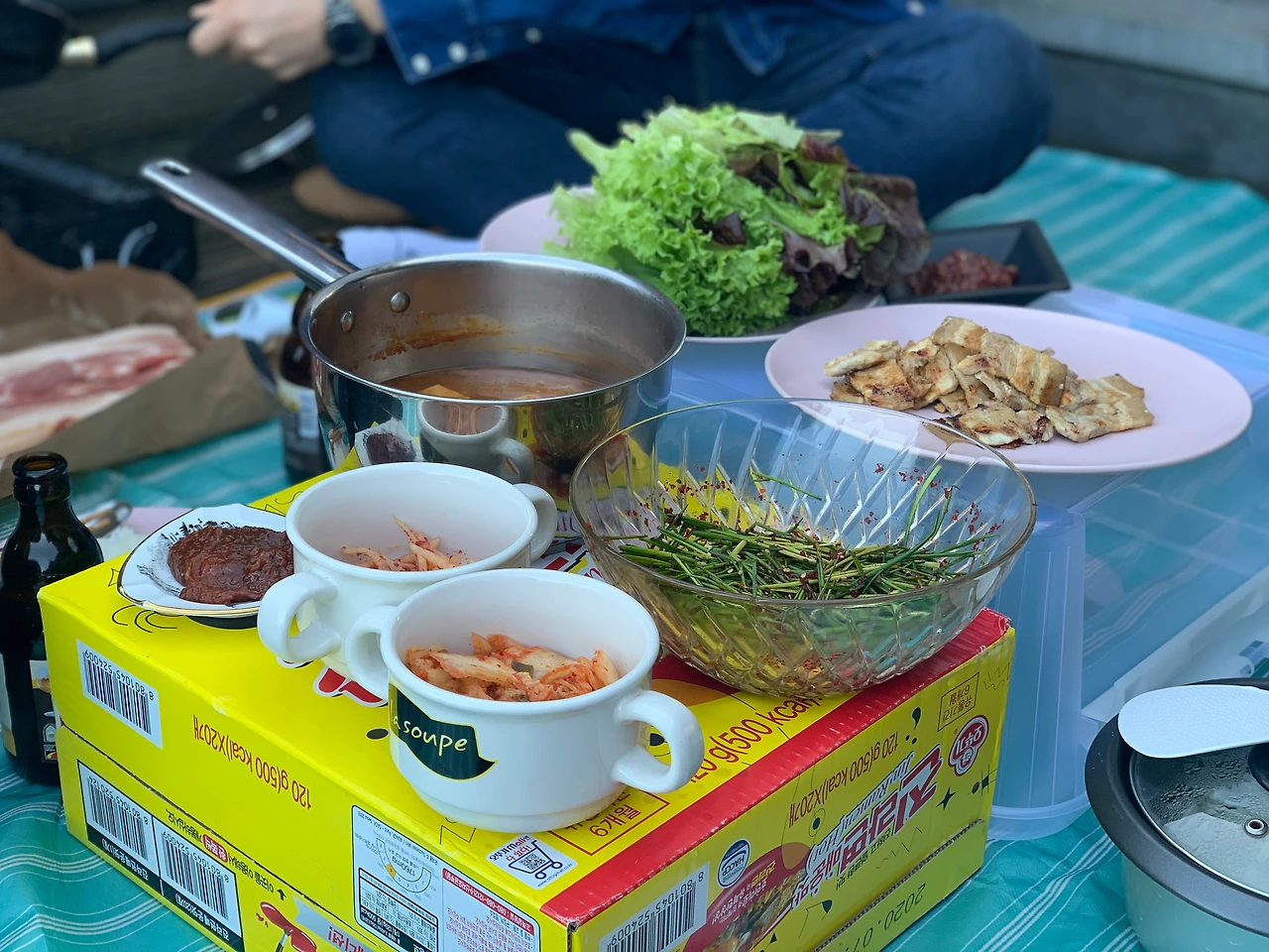 갑자기 날씨가 좋아졌다. 지난주까지만 해도 바람이 꽤 쌀쌀해 경량 패딩을 입고 다녔는데, 갑자기 초여름이다. 도저히 집에만 있을 수 없어서 동네 한 바퀴 돌고 왔는데 마침 근처에 사는 친구 부부가 삼겹살을 먹으러 오라고 초대를 했다. 셧다운때문에 가끔 온라인으로만 만나고 직접 만나는 건 정말 오랜만이었다. 바깥공기를 마시면서 테라스에서 구워 먹는 삼겹살은 정말 최고였다. 무생채에 부추 절임까지 한국에 있는 것처럼 제대로 먹은 한 끼였다.