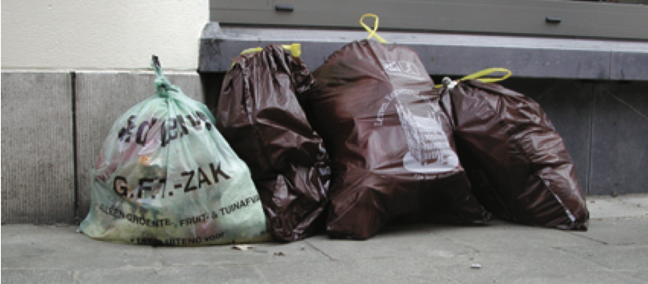 각종 쓰레기봉투는 근처 마트에서 살 수 있는데, 일반쓰레기봉투가 가장 비싸고, 음식 쓰레기 및 PMD봉투가 가장 저렴하다. 봉투값에 차등을 주어서, 쓰레기를 분류할수록 더 저렴한 값에 쓰레기를 처리할 수 있음을 강조하고 있다.