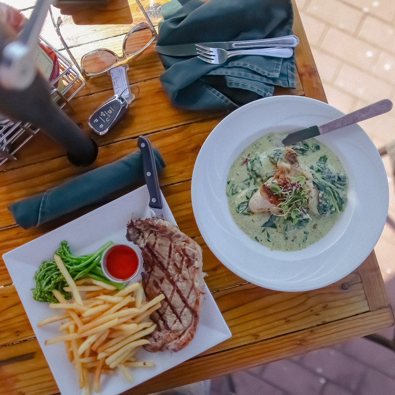 아침부터 나의 서테이크와 ... 친구가 주문한 저거 스읖 같이 생긴거는 ... 잘 모르겠다아...ㅋ