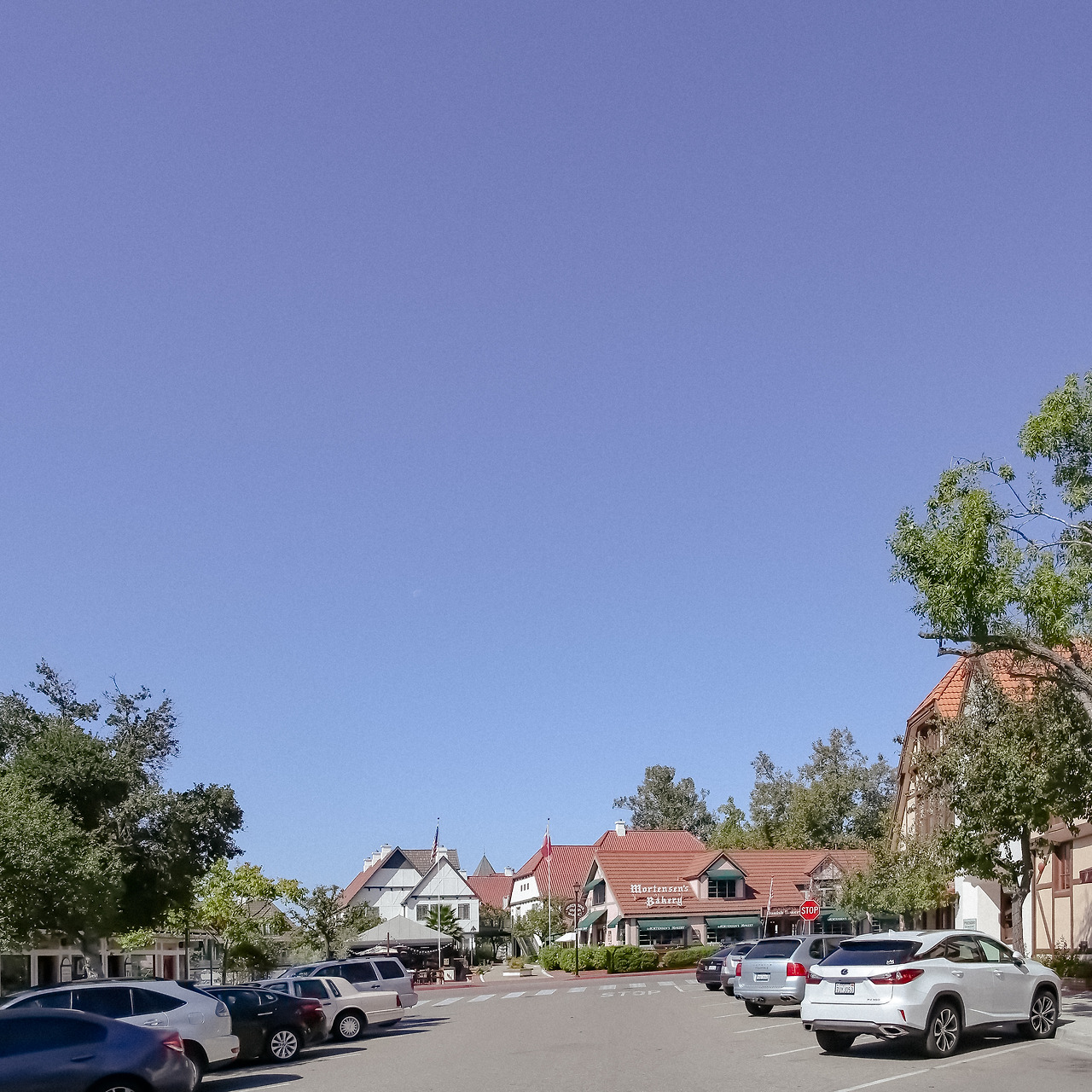 쨍한 캘리포니아의 파란 하늘에 그려진 솔뱅은
