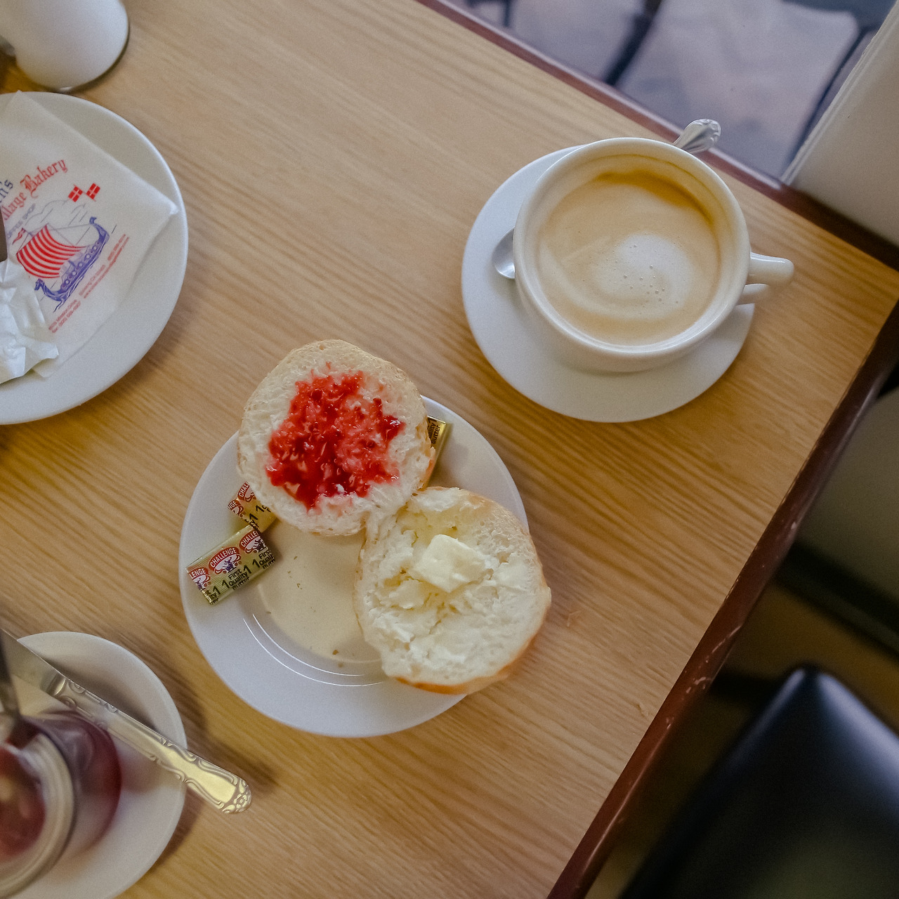 라떼와 작은 모닝빵 같은거 하나를 주문했다.