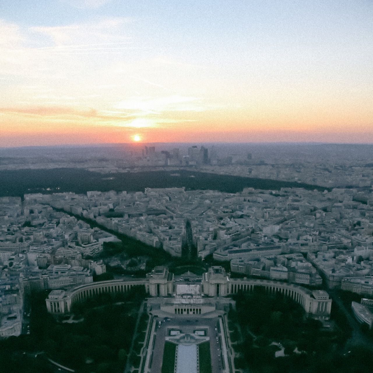 저 멀리 라데팡스까지 탁트인 풍경에 아름다운 햇살이 내려오고 있다.