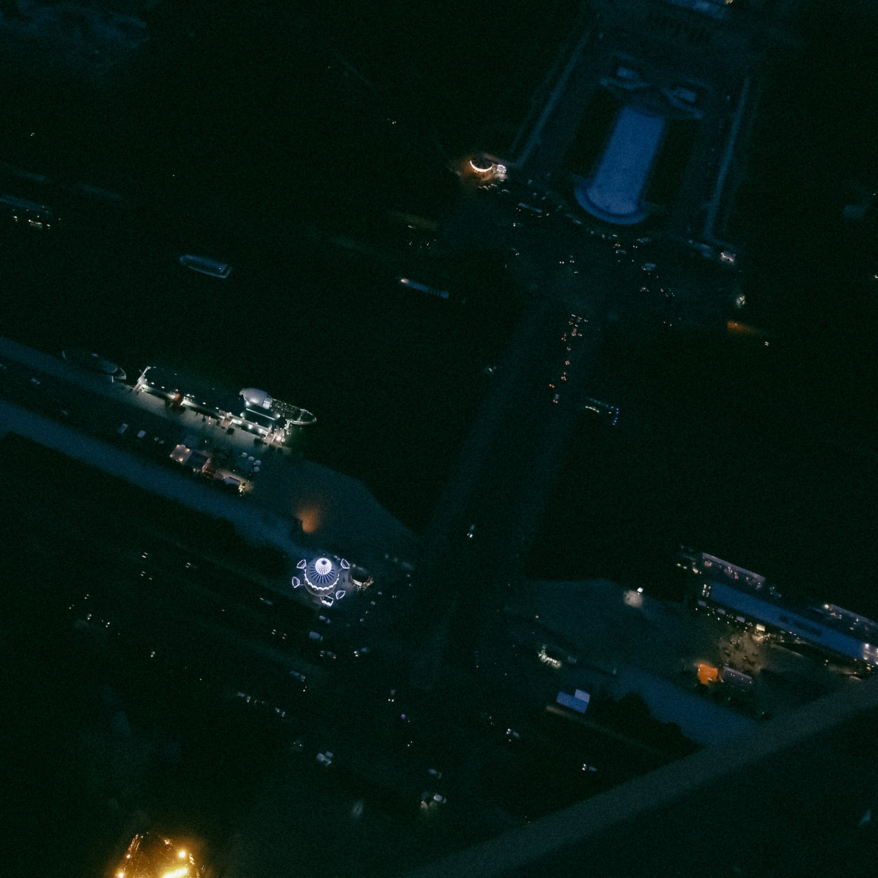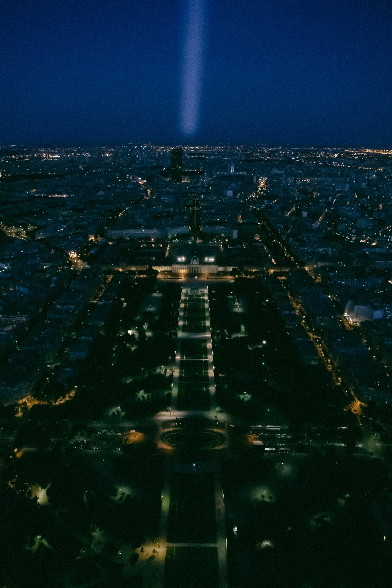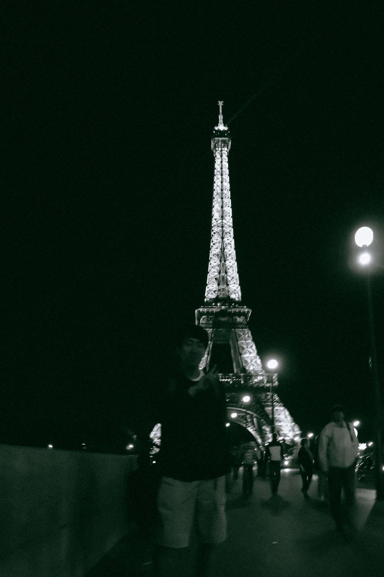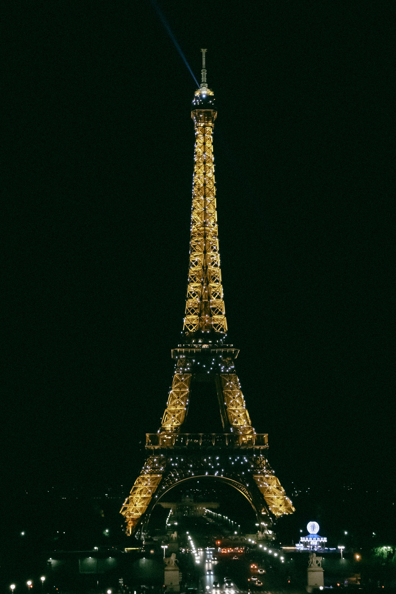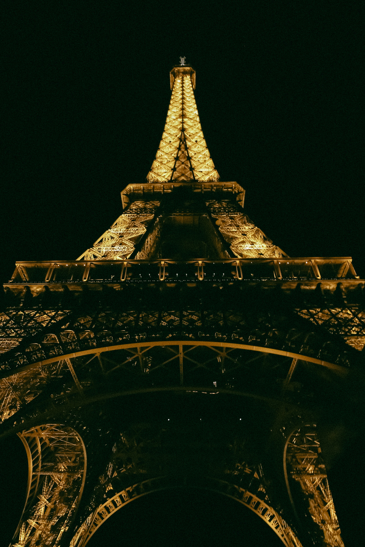 곳곳에 있는 노란 조명들이 어두운 에펠탑을 밝혀준다.