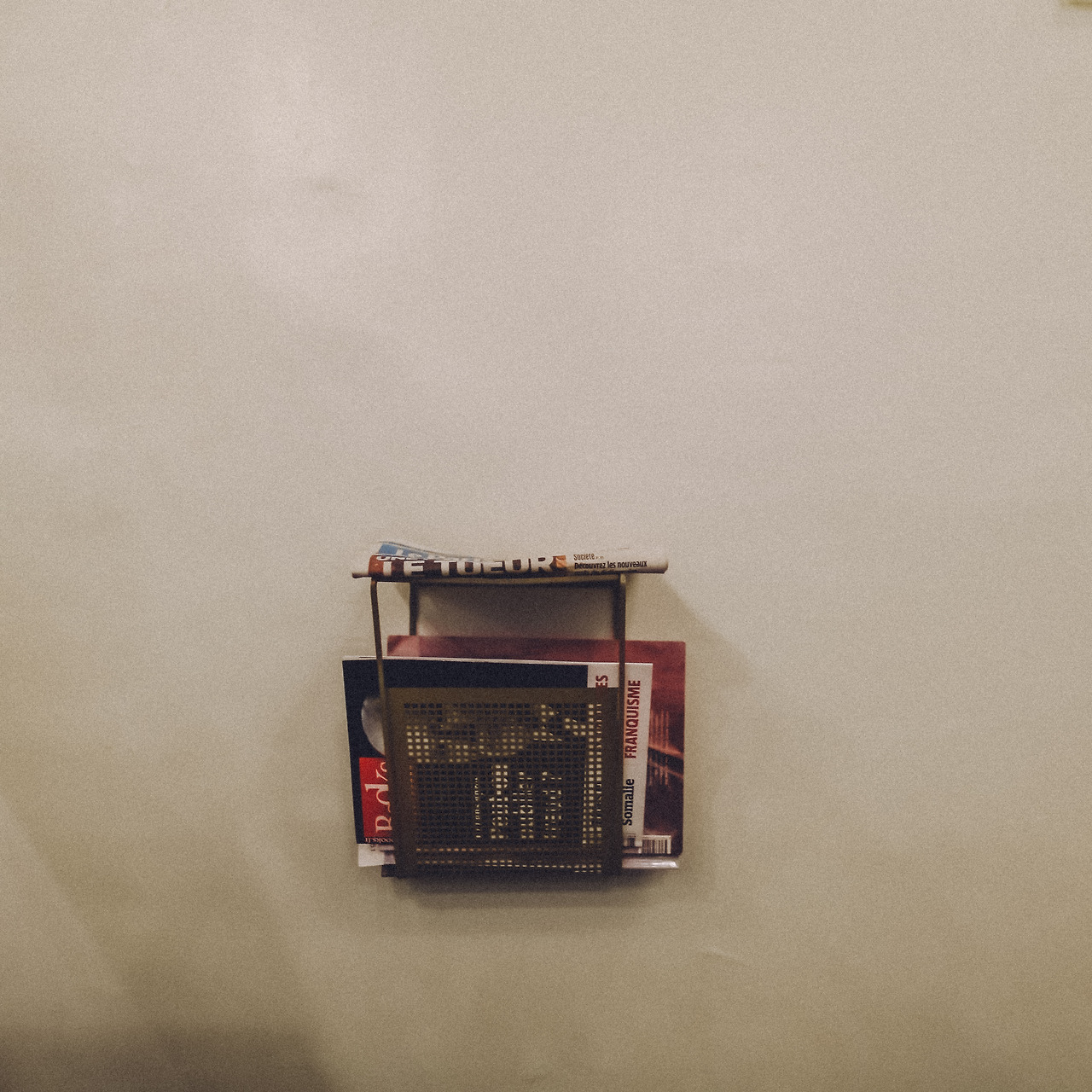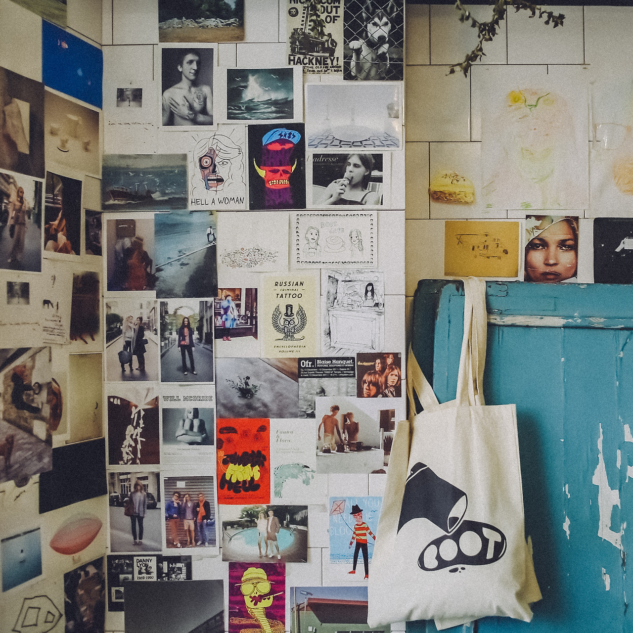 다양한 엽서, 사진들로 벽에 덕지덕지