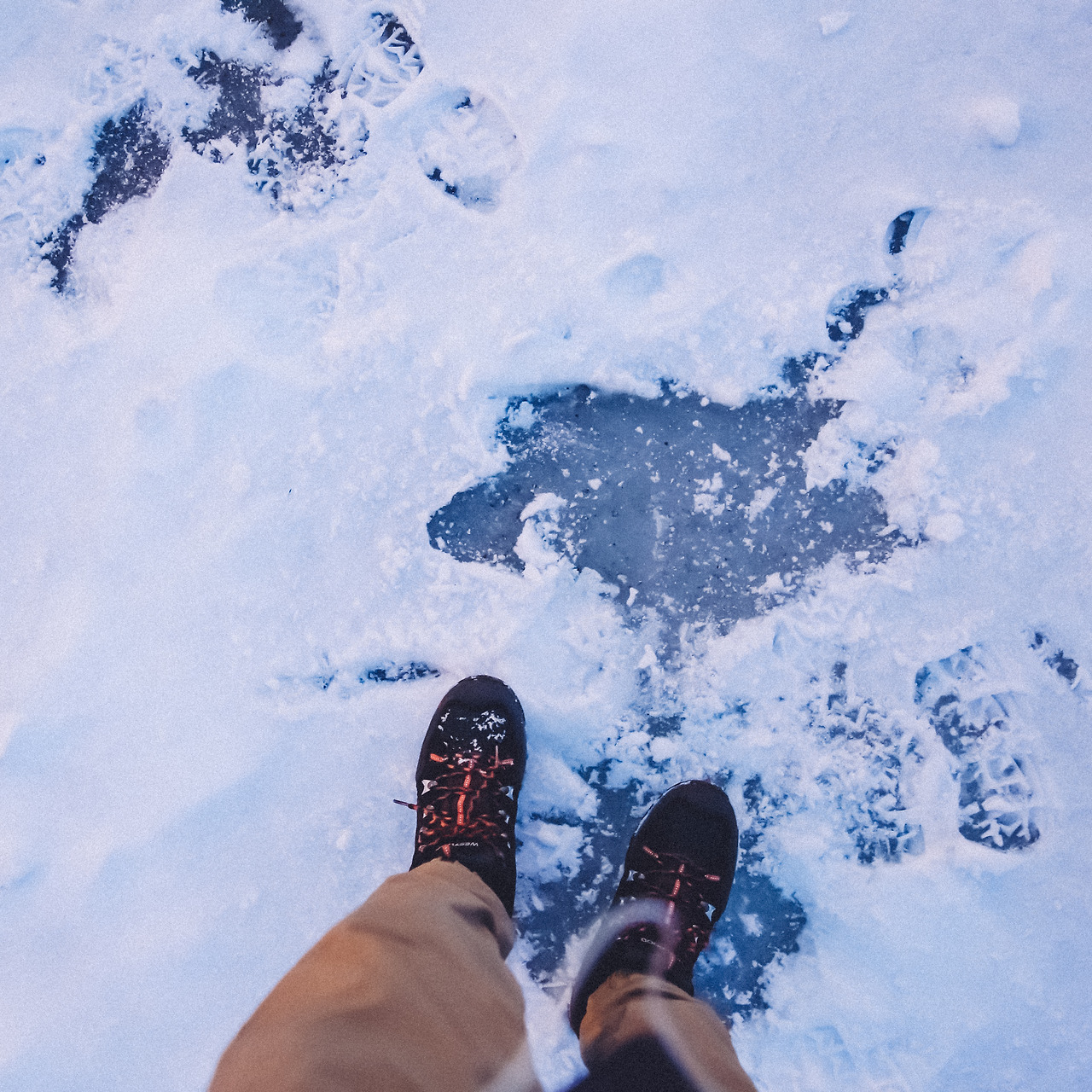 살짝 발로 눈을 걷어보면 딴딴한 얼음이 나온다.