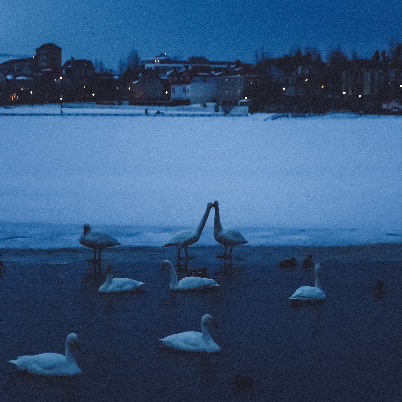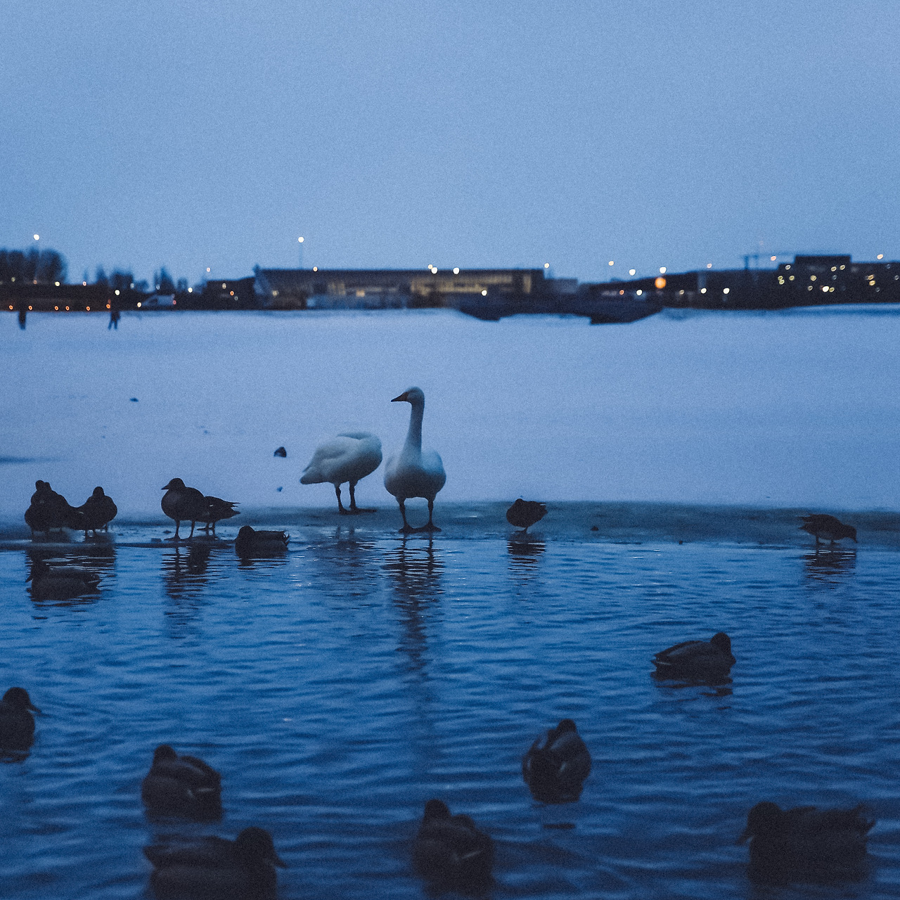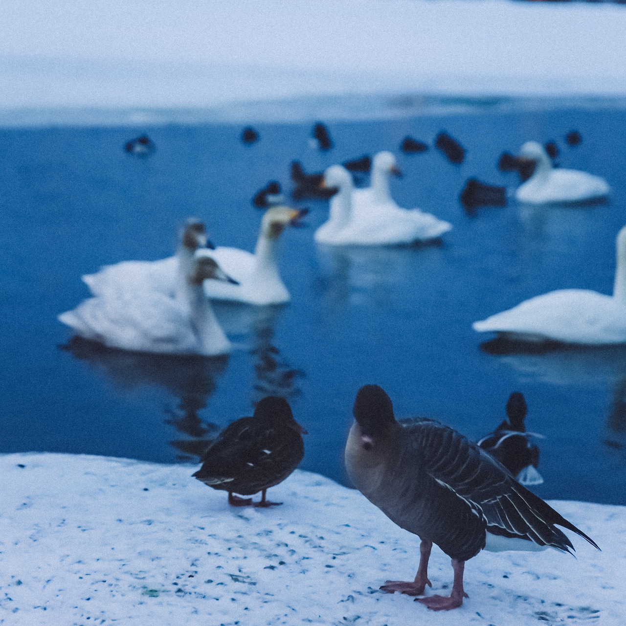 물길 주변으로 오리들과 백조들이 모여 있었다.