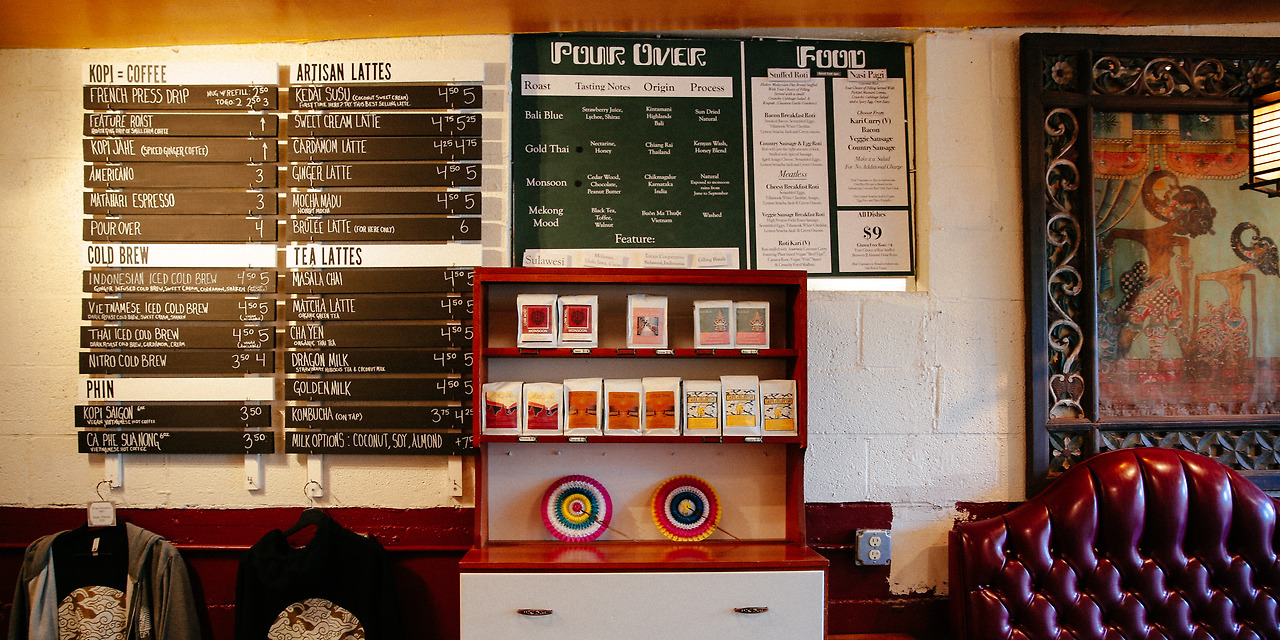 하트 커피 옆에 옆에 있는 아주 작은 카페인 Kopi Coffee house