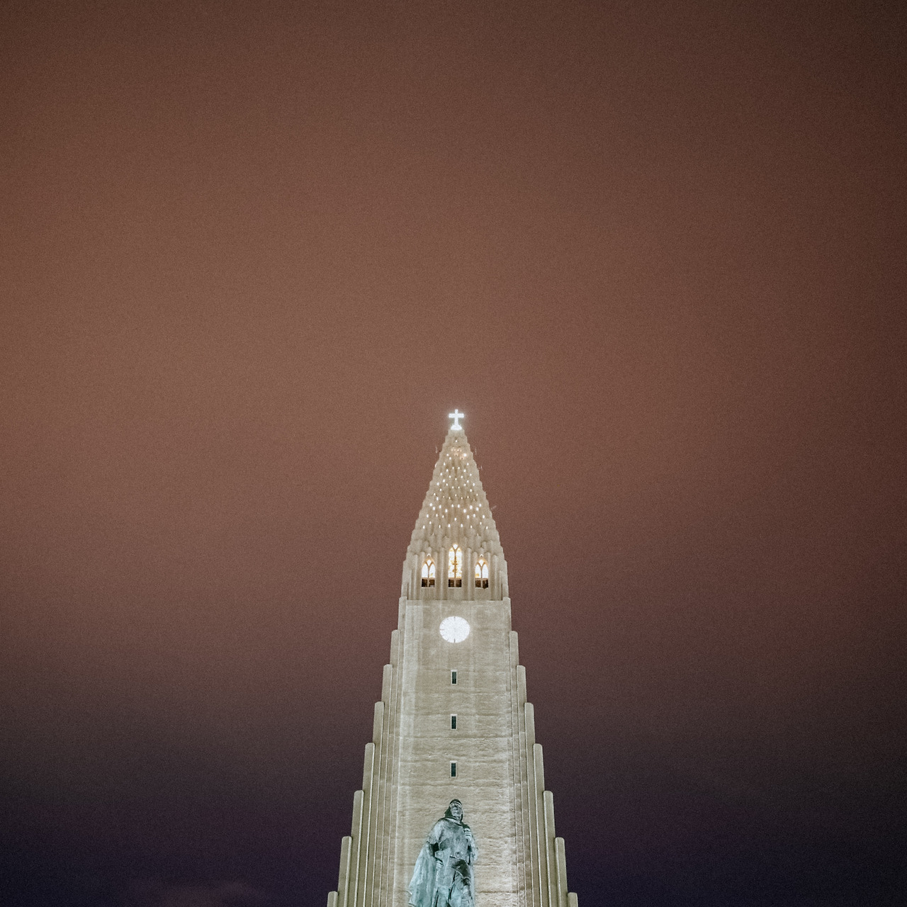 할그림스키스캬 교회를 중심으로 하늘에 가득한 핑크빛 하늘