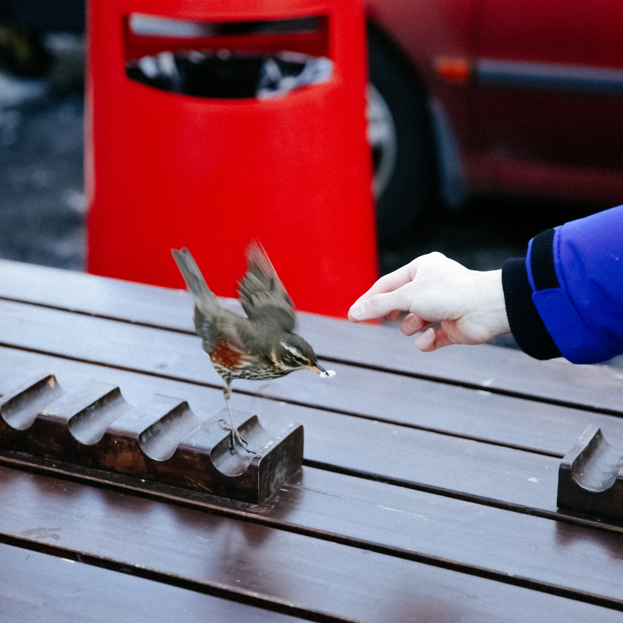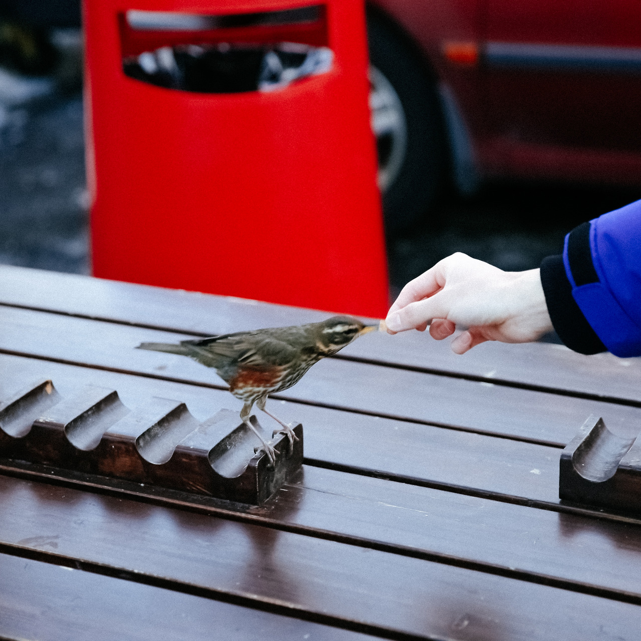 배고픈척 하길래 빵부스레기 하나를 줬는데...