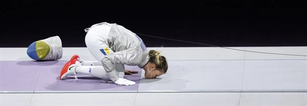 잠시 후 심판이 승리를 확정 짓자, 그녀는 우크라이나 국기 색으로 칠한 마스크를 벗고, 땀과 눈물이 범벅된 얼굴을 엎드려 땅에 키스를 했다. 관중석에서 기립박수와 환호가 울려 퍼졌다. 그녀는 카메라를 향해 소리쳤다. “우크라이나, 사랑하는 나의 조국. 이건 당신을 위한 것입니다.”