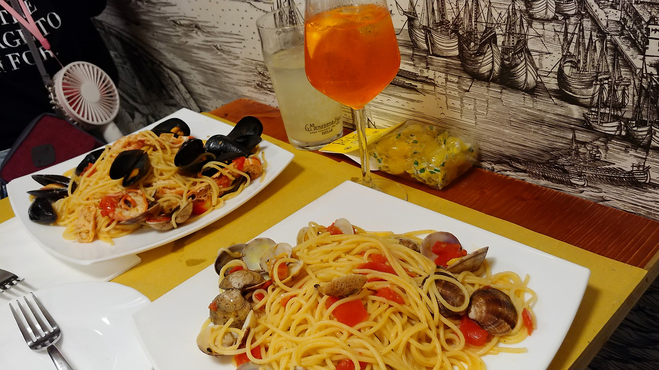 그리고는 한국인들이 많이 찾는다는 레스토랑 <Bar Puppa>에 가서 점심을 챙겼습니다. 한국인 직원이 있어서 그런지 가게는 좁은데 한국인들이 끊이지 않고 들어왔어요. 가격도 저렴해서 먹기 좋았죠. 저와 제 동생은 봉골레 파스타와 해물 파스타, 그리고 스프리츠를 한 잔 마셨어요. 후식으로 카푸치노도 나왔는데, 이탈리아에서는 커피 체인점이 살아남지 못한다는 게 단번에 이해됐습니다. 지금껏 제가 알던 카푸치노는 카푸치노가 아니었어요. 음. 요즘 같은 장마철에 은은한 커피 향을 떠올리니, 감성에도 비가 촉촉이 젖어드네요.