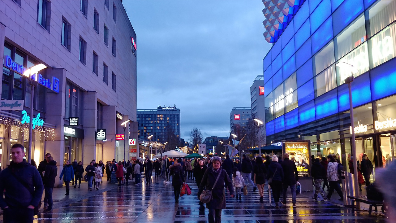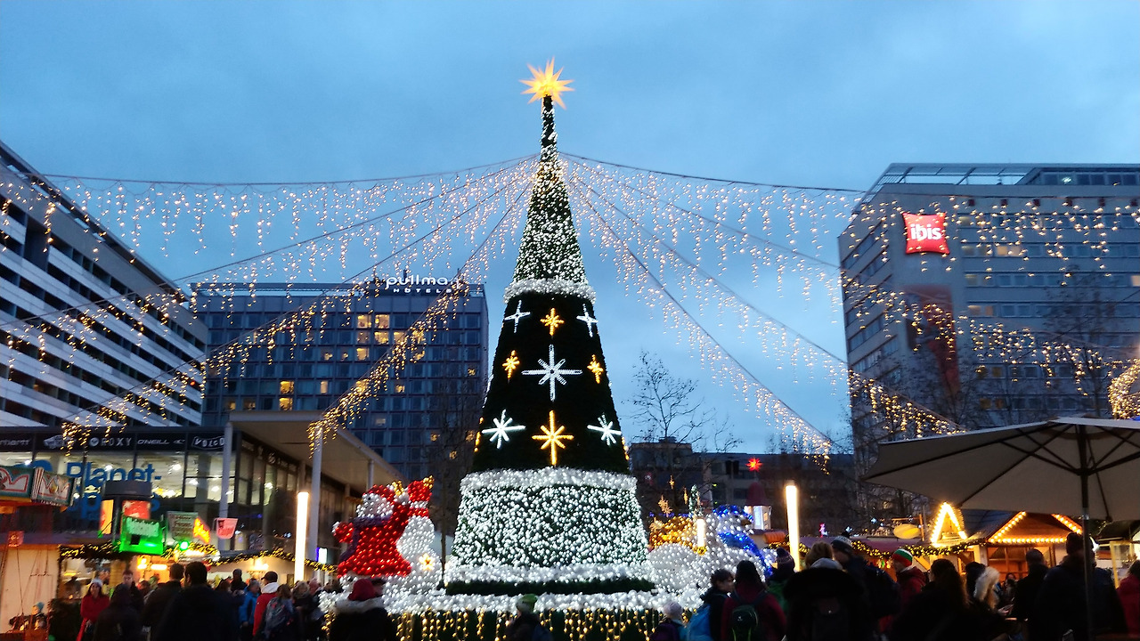 감사하게도 프라하로 돌아가는 버스를 타러 가기 전까지 날이 맑게 개었어요. 기념품을 사러 돌아다니고, 골목을 누비며 겨울 유럽의 마지막 여행지가 될 독일 드레스덴을 깊이 새겨둘 수 있었습니다. 올 때와 달리 무거워진 가방을 메고 광장을 지나쳐 정류장으로 걸어가는데, 낮에는 아무 생각 없이 지나쳤던 대형 트리를 발견했어요.