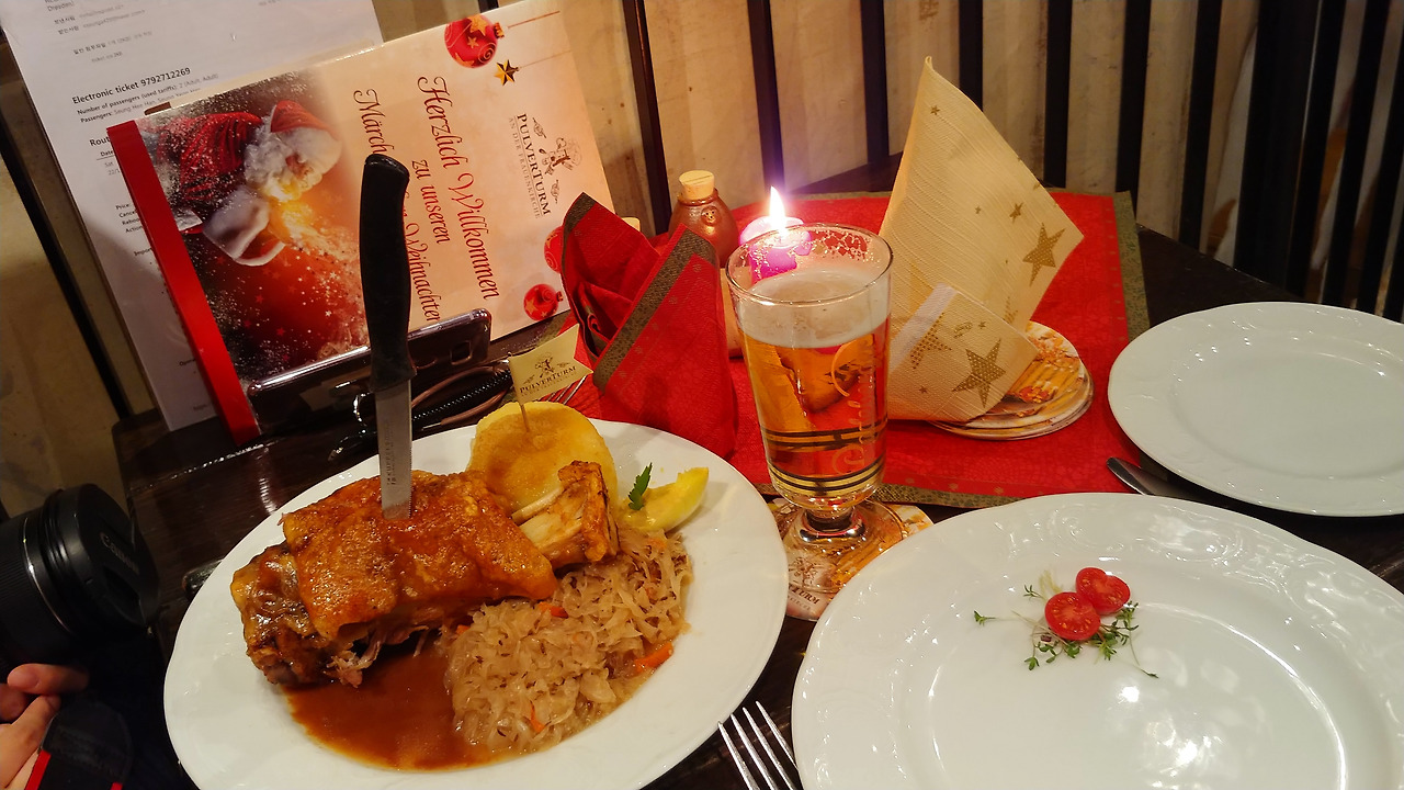 한국어 메뉴판이 있고, 맛도 좋고, 친절하단 정보를 입수해 찾은 곳이었는데, 입구를 못 찾아서 한참 헤맸어요. 지하에 있을 거라곤 생각도 못했으니까요. 한국어 메뉴판은 있긴 했습니다만, 도저히 이해가 되지 않는 정말 '한글'로만 적혀 있는 정도라 영어 메뉴판을 참고했어요. 맛은 좋았지만, 서비스는 다소 실망스러웠습니다. 인종차별이 있었거든요. 좁은 통로 테이블은 동양인 몫이었죠. 거기다 마시지도 않은 콜라가 계산서에 적혀 있었어요. 주문을 받은 남자 웨이터 짓이었는데, 다행히 계산을 하러 온 여자 웨이터분이 잘 해결해주셨어요. 체코 꼴레뇨는 심각하게 짰는데, 학센은 그렇지 않았다는 점, 화장실에서 마주친 손님들의 친절 덕분에 기분을 완전히 망치지는 않았지만, 드레스덴에 방문할 예정인 친구들에겐 피하길 권고했었어요. 나중에 사귄 독일 친구 말로는, 학센은 독일인들이 자주 먹는 음식이 아니래요. 한식으로 알려진 음식들은 집에서도 해 먹는 것들이 많은데, 독일은 그렇지 않다나봐요. 그래서 저도 다음엔 현지 친구에게 추천받을 예정입니다.