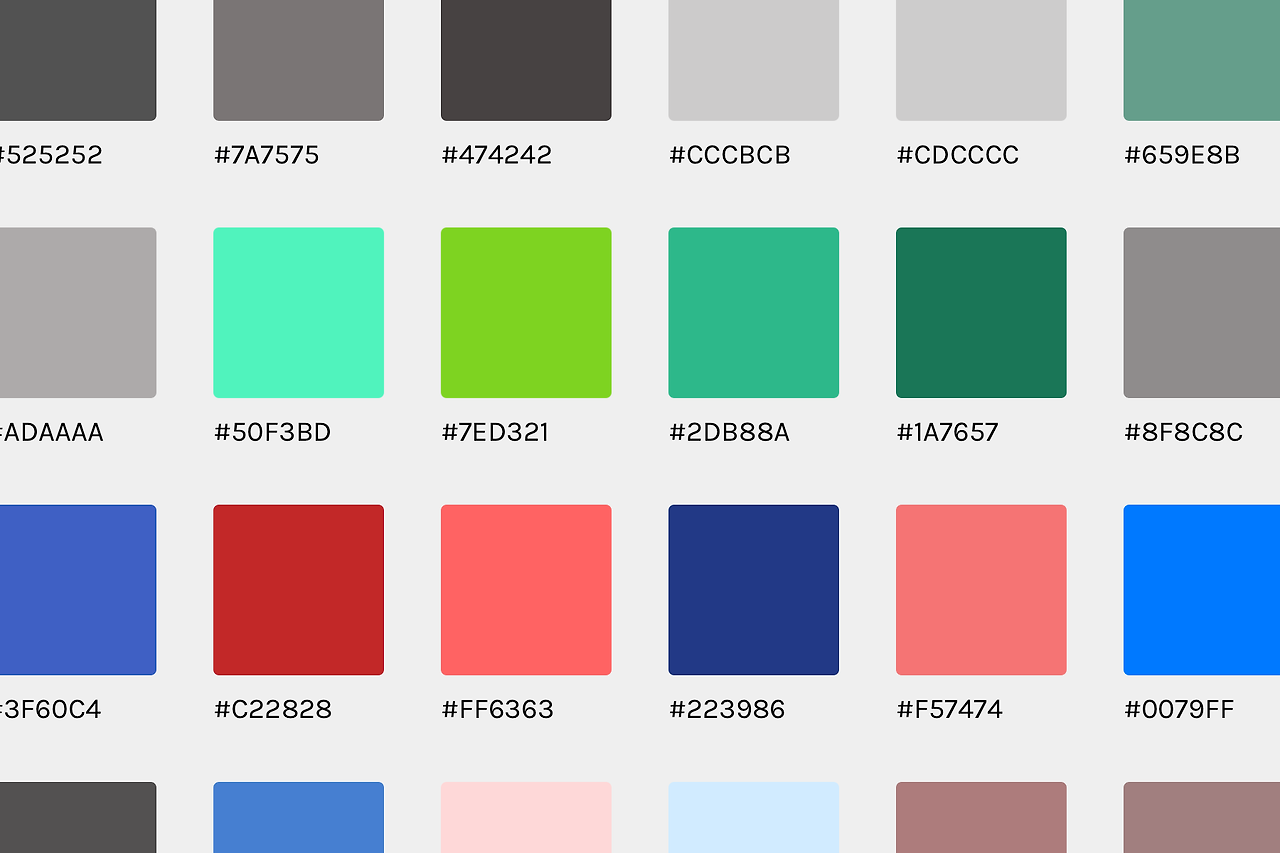 앞서 이야기 한대로, 타입의 컬러를 선택할 때 항상 메인과 서브 그리고 딤된 레이블의 컬러까지 전체 프로젝트 안에서 연속성을 필요로 한다는 것을 알아차렸다. 사용할 색상에 음영을 넣어 기본 색상 팔레트를 만들자. 라이트, 다크 버전 인터페이스의 디테일을 잡기 위해서 이것들이 필요할 것이다.