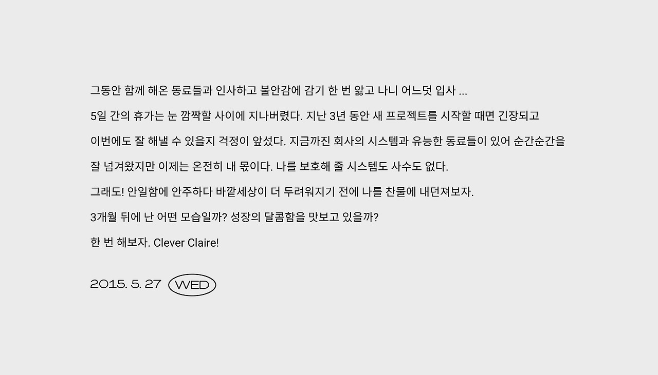 그렇게 벌써 5년이라는 시간이 흘렀다. 2015년의 클레어와 2020년의 클레어는 어떻게 달라졌을까? 그동안 무엇을 보고 듣고 생각했는지 담담히 되돌아보는 시간을 가지기로 했다.
