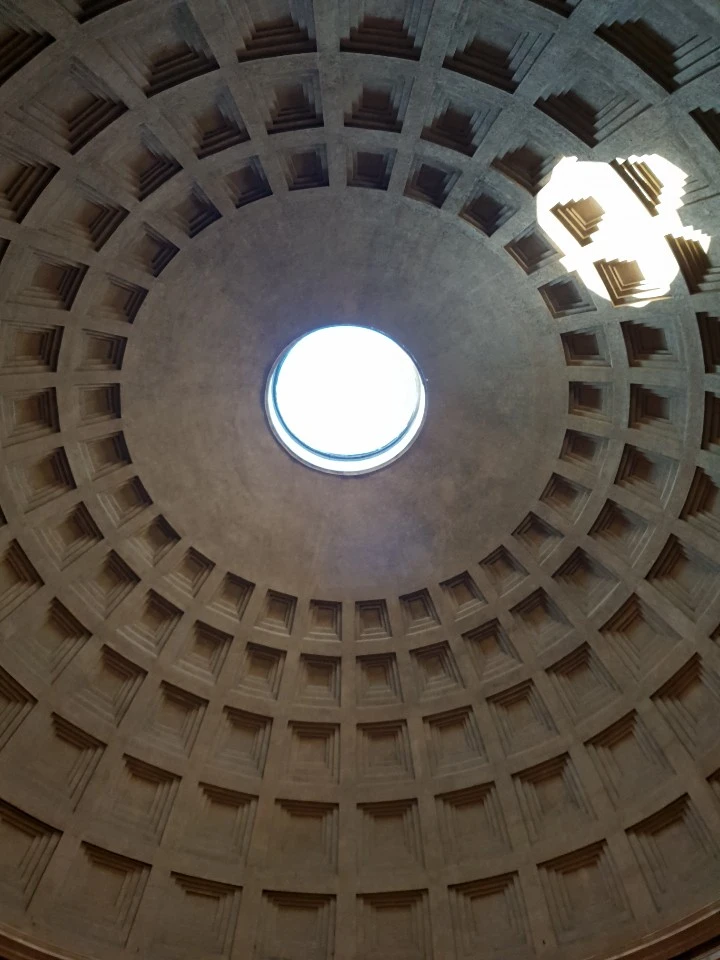 판테온은 6.2m 두께의 벽과 43.2m 높이의 건축물로 기둥이 없는 것이 특징이며, 직경 9m의 세계에서 가장 큰 콘크리트 돔 구멍(오쿨루스;Oculus)은 하늘의 빛을 연결해주며 채광창 역할을 한다.