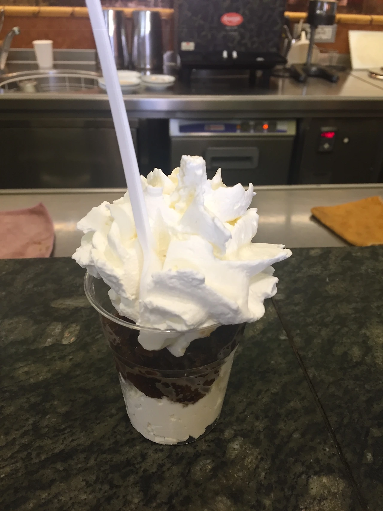 타짜도르에서 에스프레소 외 두 번째로 유명한 인기 메뉴는 커피 슬러시 같은 맛의 '콘파냐'이다. 위아래로 쌓인 크림 사이에 커피 슬러시를 담아내는 '콘파냐'는 더운 날씨에 로마를 찾는 관광객이라면 시원한 아이스커피를 찾기 힘든 이탈리아에서 아마 뜨거운 에스프레소보다는 더 반갑게 느껴질 메뉴가 아닐까 싶다.