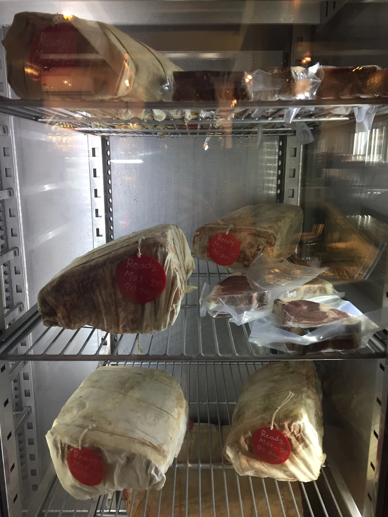 - 스테이크는 드라이 에이징을 한 스테이크로 1층에서 직접 보고 고를수도 있다.