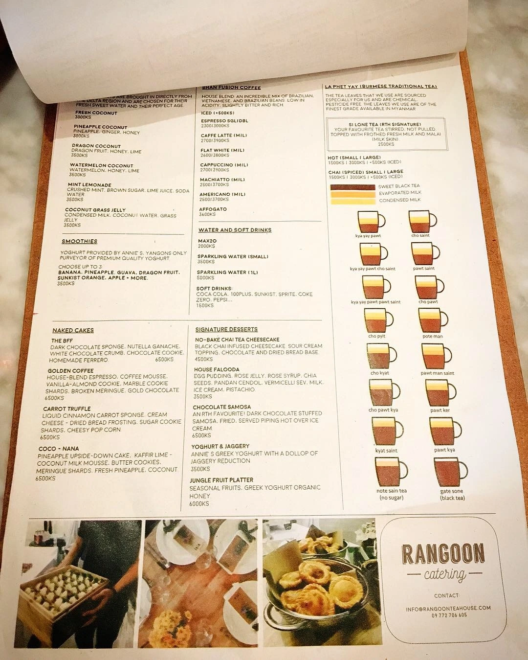 랑군티하우스에 들어서면 깔끔하고 세련된 인테리어와 아기자기한 소품 배치로 꾸며진 테이블에 절로 기분이 좋아진다. 대부분의 직원이 영어 구사가 가능하며, 다양한 메뉴를 상세하고 친절하게 설명해준다. 랑군티하우스에서 제공하는 미얀마 전통티인 La Phet Yay (라펫예)는 개개인의 기호에 맞게 차를 즐길 수 있도록 다양한 비율로 구성된 메뉴가 제공되며 본인의 취향에 따라 고르면 된다.