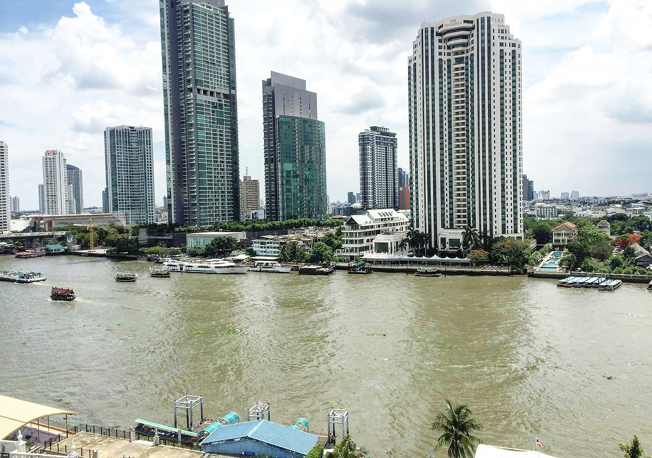 르 노르망디 (Le Normandie) 레스토랑은 미슐랭 스타가 제공하는 훌륭한 요리도 유명하지만, 통유리로 구성되어 짜오프라야 강(Chao Phraya River)의 전망을 바라보며 식사를 할 수 있는 레스토랑 인테리어 또한 유명하다.