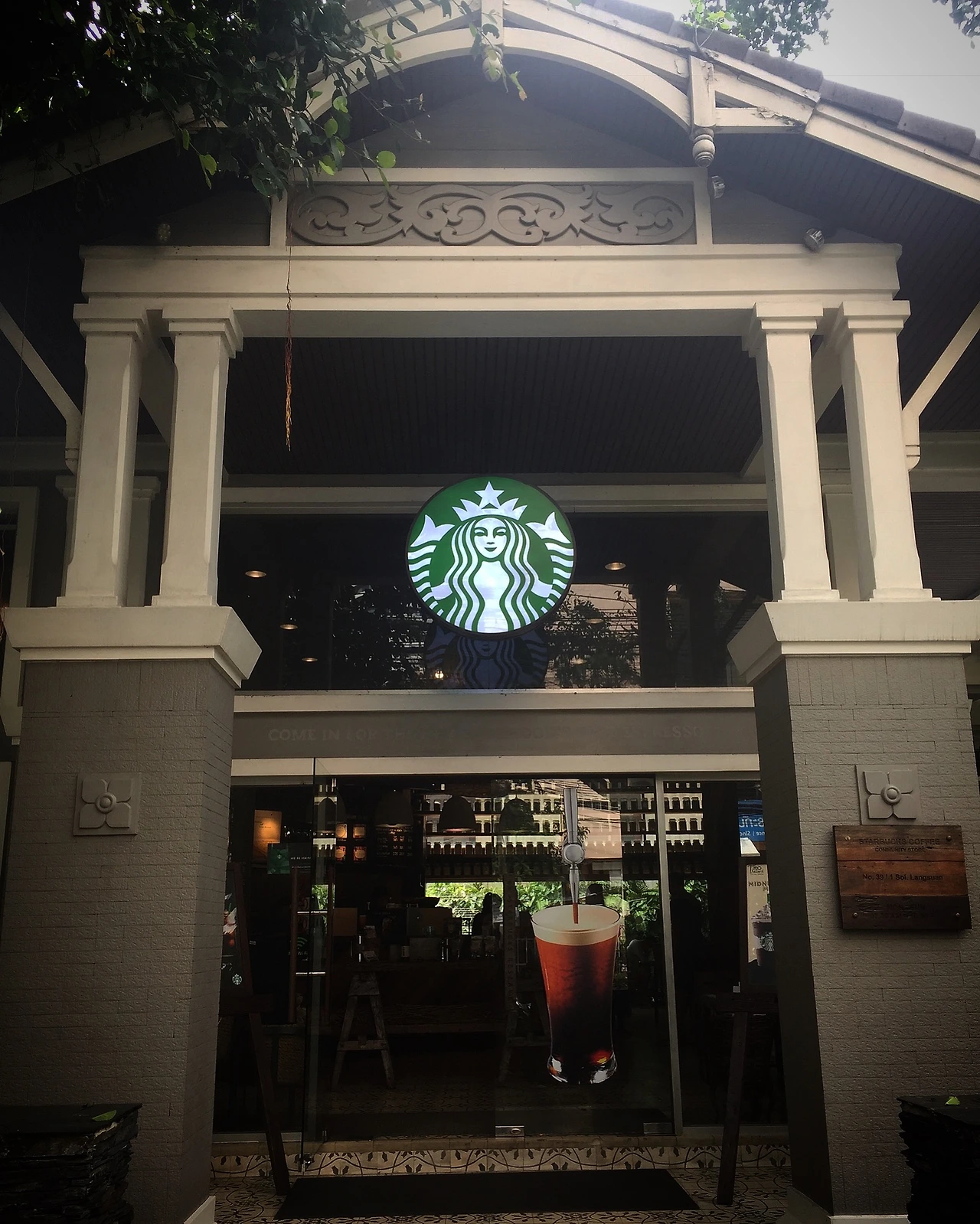 '아시아 스타벅스 1호점인 스타벅스 랑수언로드 지점은 방콕 느낌을 인테리어에 녹아들게 만들어 다른 지점의 스타벅스와 비교되는 특유의 분위기가 있는 곳이다. 입구부터 마치 초록색이 만연한 풀숲의 싱그러운 느낌을 주는 외관은 SNS에서 꼭 인증해야하는 사진촬영 스팟으로도 유명하다.