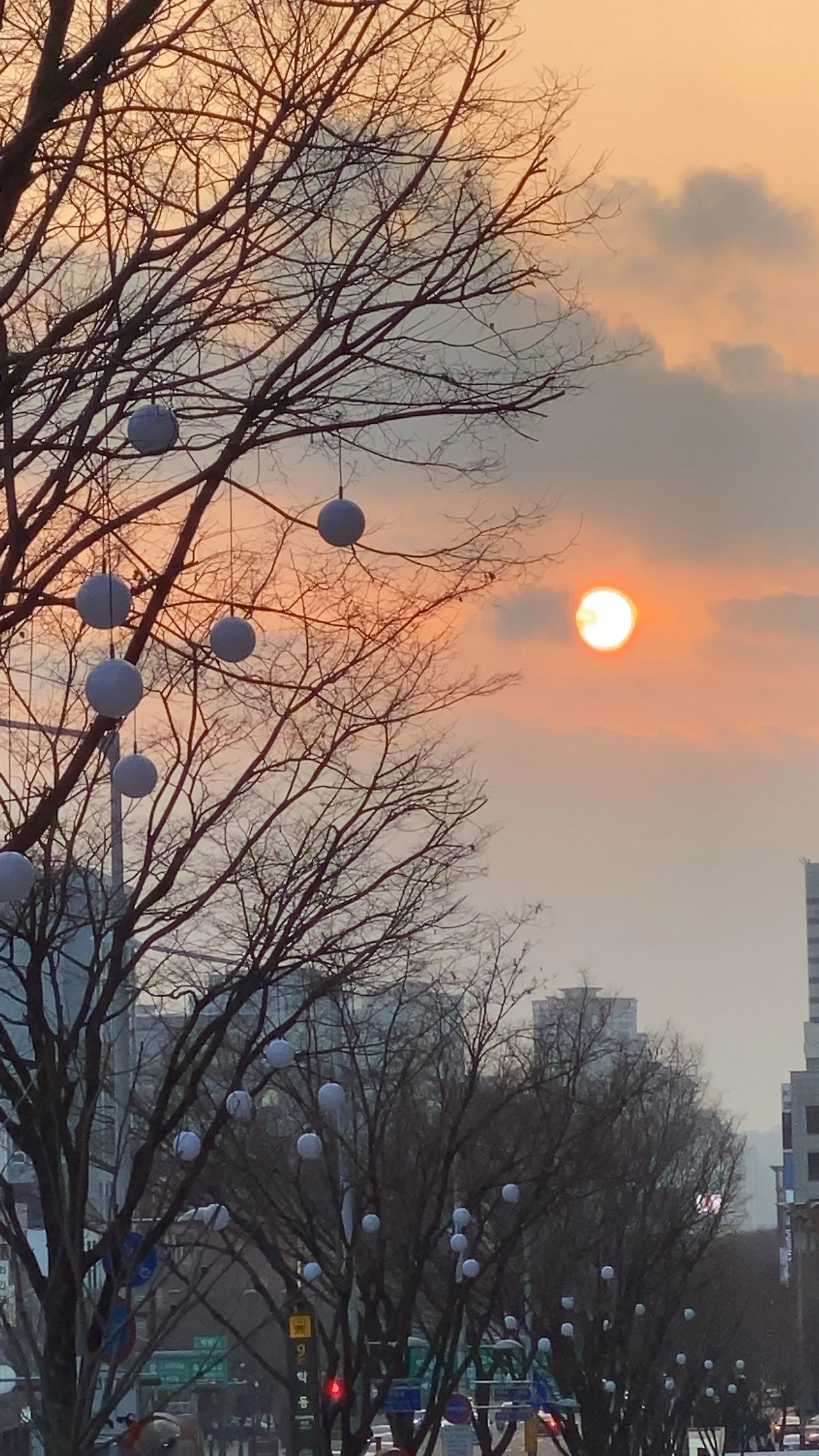 퇴근길 말도 안되게 강렬하게 지는 해를 보며