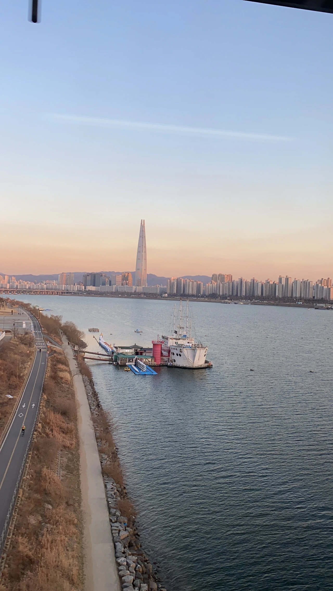 퇴근길 지하철 창 밖에 비치는 한강의 빛깔로